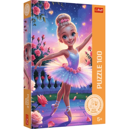Bájos gyerekpuzzle balerinás motívummal a Trefl márkától, 100 darabbal, amely kirakva 41 × 27,5 cm méretű képet alkot. Minőségi kivitel, környezetbarát anyagok és speciális kalanderezett papír a jobb fényvisszaverésért, ami megkönnyíti a kirakást és támogatja a gyerekek képzeletét és esztétikai érzékét.