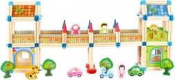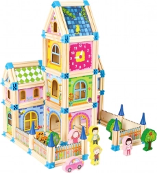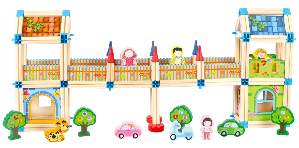 Ez a kreatív építőkészlet úgy készült, hogy együtt nőjön a gyerekekkel. A masszív fa elemek és a műanyag csatlakozók kombinációja stabil és sokoldalú szerkezetek építését teszi lehetővé – a kis házikóktól egészen a monumentális kastélyokig. A színkontrasztok és a különböző formák ösztönzik a logikus gondolkodást és a térbeli képzelőerőt.
