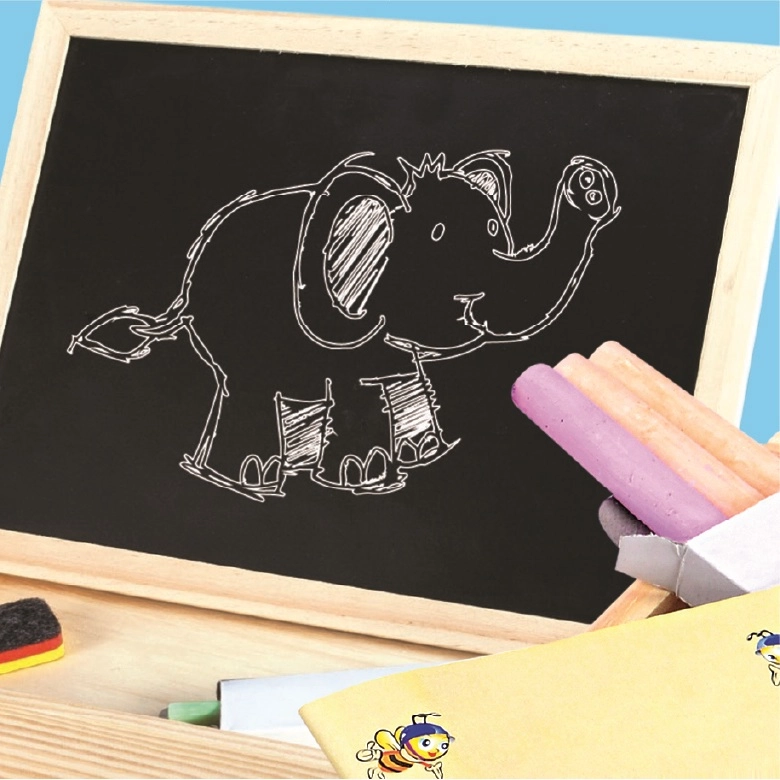 - kétoldalas tábla fa dobozban, 3 kréta, filctoll filc szivaccsal, mágnesek, mintalap