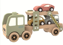 A fa autószállító ideális választás a kis autórajongóknak. Masszív kivitelezésének és átgondolt részleteinek köszönhetően a gyerekek sokáig élvezhetik a pakolást, kirakodást és a vezetést. A természetes fa megjelenés a finom színekkel elegáns hatást kelt, és ellenáll a mindennapi játéknak.