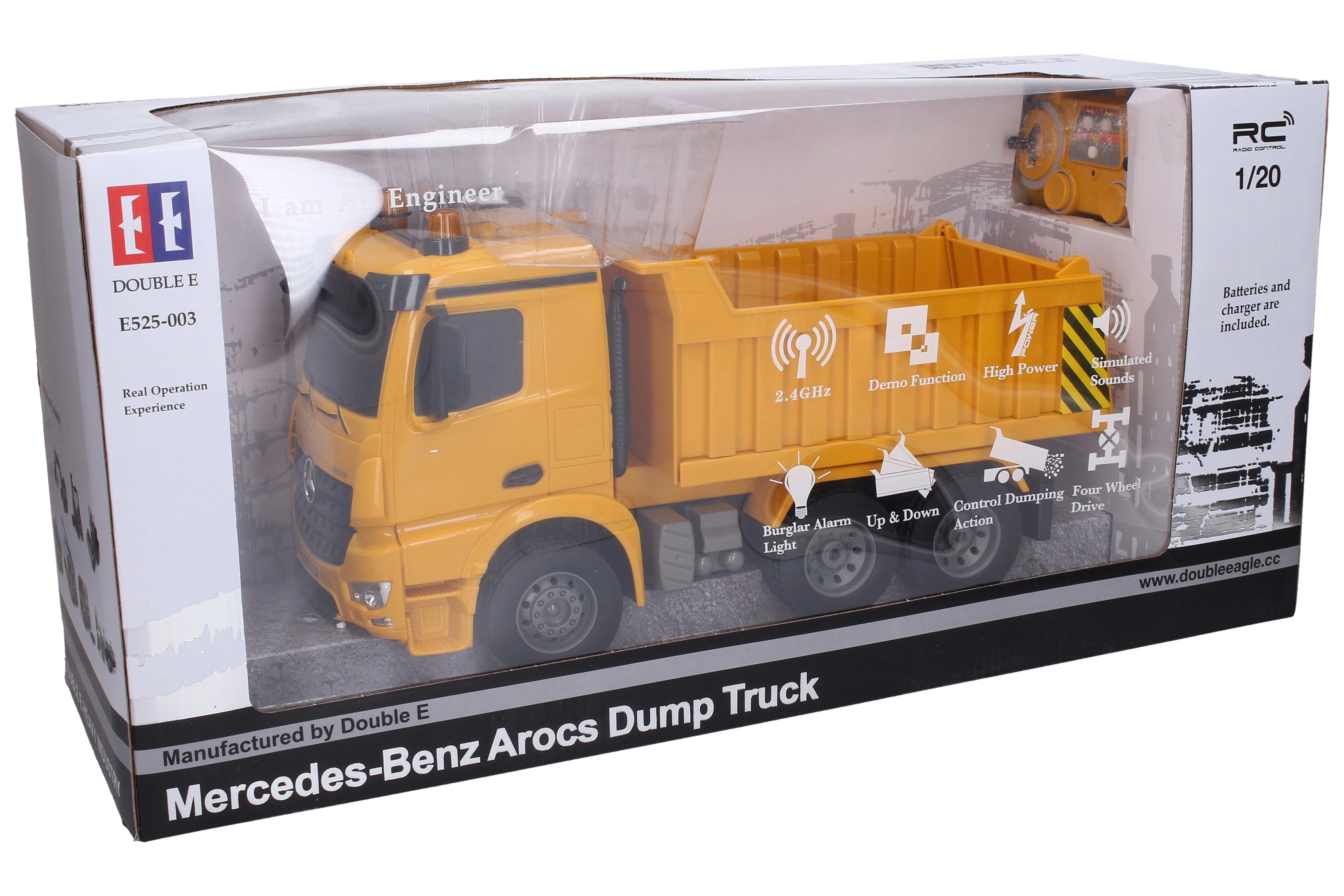 Élvezd a valósághű építkezős szórakozást a 35 cm-es MERCEDES RC billenőplatóssal. Kínál 2,4 GHz-es vezérlést, fény- és hangeffekteket, működő platódöntést és billentést, valamint kényelmes USB-töltést. A csomag tartalmaz egy 4,8 V 400 mAh akkumulátorcsomagot a járműhöz.