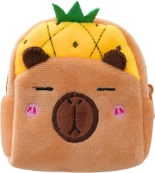 Aranyos, kapibara alakú plüss pénztárca sárga ananász motívummal, ideális gyerekeknek és a puha kiegészítők kedvelőinek. Könnyű, kellemes tapintású, és a kompakt, 9,5 × 8 cm-es méretnek köszönhetően elfér táskában, hátizsákban vagy tolltartóban. A cipzáras zárás biztonságban tartja az apróságokat, a műanyag klip pedig megkönnyíti a rögzítést kulcshoz vagy táskához.
