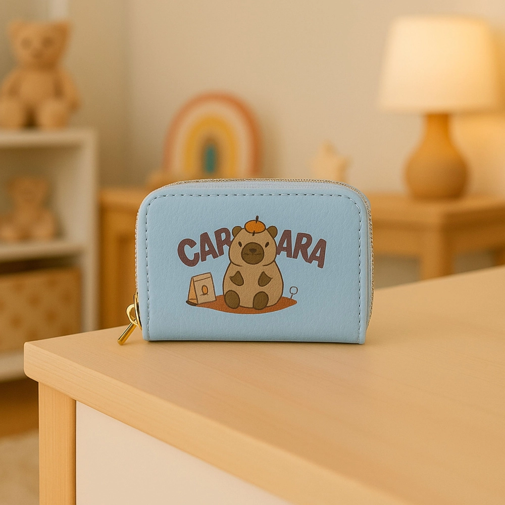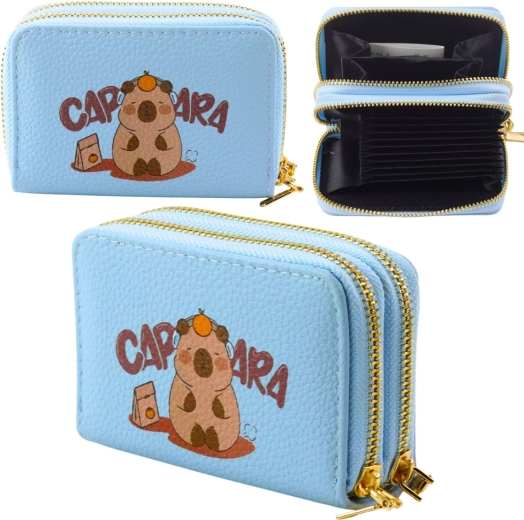 Ez a világoskék pénztárca játékos kapibara dizájnt és praktikus rendszerezést ötvöz. Két aranyszínű cipzár választja el a tárolóteret, így könnyedén külön tarthatod a kártyákat, készpénzt, érméket és blokkokat. A belső harmonikaszerkezet gyors áttekintést és kényelmes hozzáférést ad.