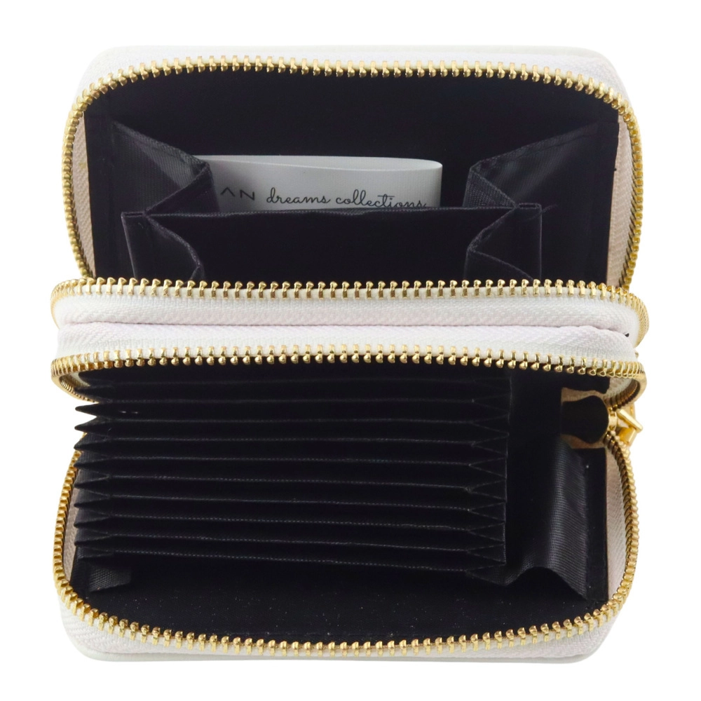 Válaszd szét a kártyákat, a készpénzt és az apróságokat két különálló térbe. Az arany cipzárak biztonságos és stílusos zárást biztosítanak.