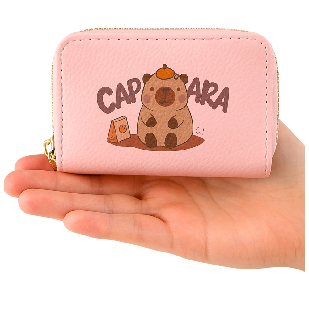 Stílusos és funkcionális pénztárca kapibara motívummal – örömet szerez a cuki kiegészítők kedvelőinek és azoknak, akik a kártyáikat és készpénzüket átláthatóan szeretnék rendszerezni. A két külön cipzáras rekesz és a belső harmonika rekeszek elegendő helyet biztosítanak bankkártyáknak, bankjegyeknek, érméknek és apró okmányoknak.