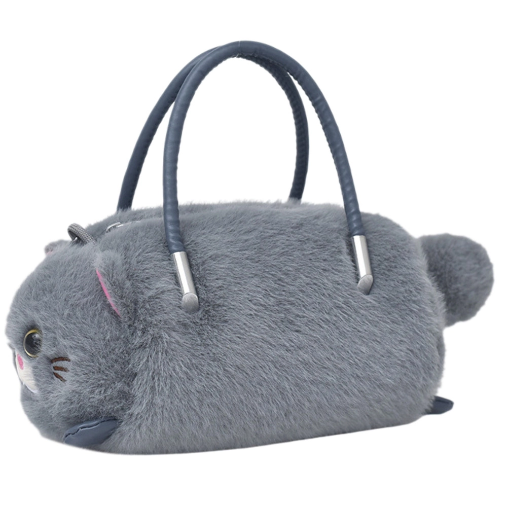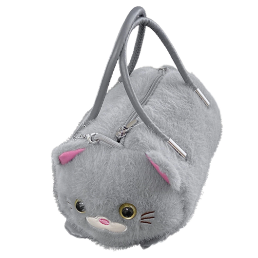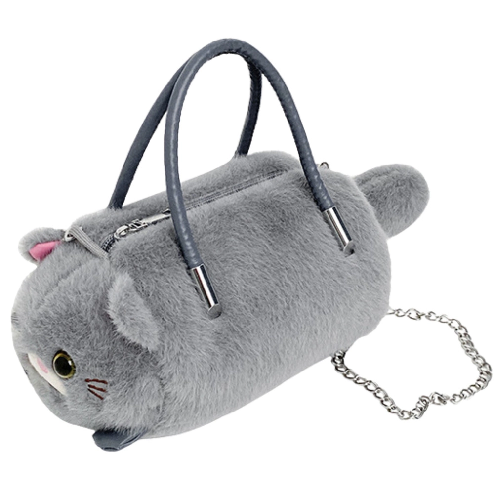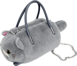 A bájos, szürke, macska alakú kézitáska ötvözi a puha plüsst a praktikus kivitelével. Két erős füllel, levehető fém lánccal a vállon hordáshoz és biztonságos cipzáras záródással rendelkezik. Ideális apróságokhoz gyerekeknek, tiniknek és felnőtteknek, akik szeretik az eredeti kiegészítőket.