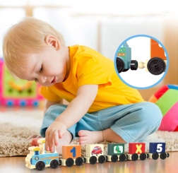 Szórakoztató és oktató, összeépíthető vonat színes kockákkal, amely összekapcsolja a gyerekeknél az alkotást és a tanulást. Betűket, számokat és képeket tartalmaz a kreativitás, a finommotorika és a logikus gondolkodás fejlesztésére. A könnyű, tartós elemek sima élekkel ideálisak a kisgyermekek kezéhez.