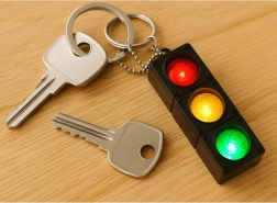 A mini közlekedési lámpa kulcstartó valósághű működést nyújt: a gomb megnyomása után sorban felgyullad a zöld, sárga és piros, villogással kiegészítve. Kompakt méreteinek köszönhetően remekül illik kulcscsomóra, iskolatáskába vagy tolltartóba, és örömet szerez gyerekeknek és felnőtteknek egyaránt.