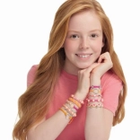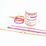 A készlet széles választékban tartalmaz szálakat és gyöngyöket élénk és trendi színekben, amelyek lehetőséget nyújtanak egyedi dizájnok megalkotására.