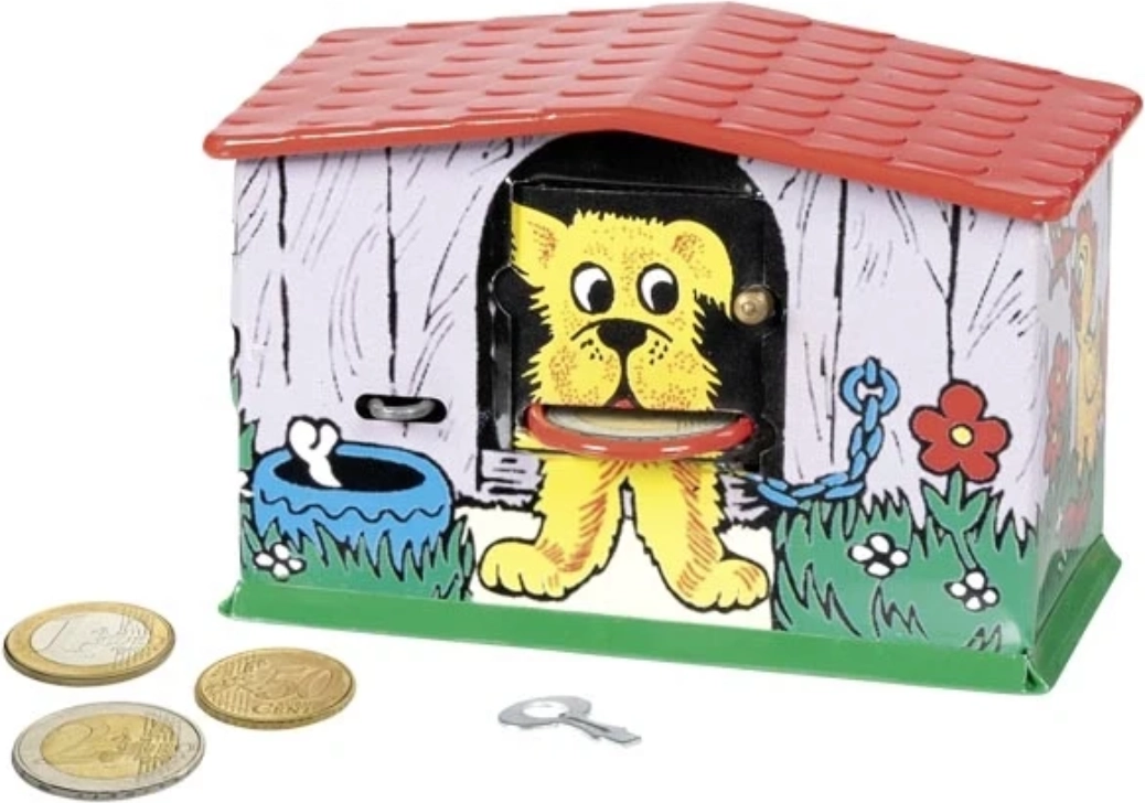 Ez a stílusos, kutyaház formájú persely remek ajándék gyerekeknek és állatkedvelőknek. A színes nyomattal és piros tetővel díszített fém test játékos hatású, ugyanakkor elég tartós a mindennapos használathoz. A érmebedobó nyílás megkönnyíti a pénz bedobását, a kis, zárható ajtó pedig lehetővé teszi a megtakarítások biztonságos kivételét.