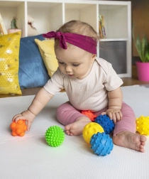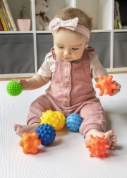 Minden labda más felületű – tüskék, dudorok és barázdák az intenzív taktilis stimulációért és a felfedezés öröméért.