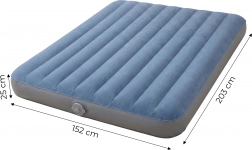A csomag része a beépített, újratölthető pumpa lítium akkumulátorral a kényelmes felfújáshoz és leeresztéshez további kiegészítők nélkül – ideális utazáshoz és otthonra is. A kellemes velúr felület csúszásmentes és komfortos tapintású, míg a 203 × 152 × 25 cm méret bőséges helyet biztosít két felnőtt számára.