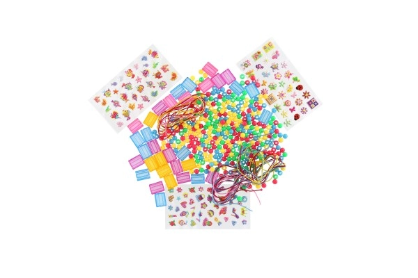 Színes gyöngyök, négyzet alakú elemek, gumiszálak és matricák – csak nyisd ki, és kezdj alkotni további vásárlás nélkül.