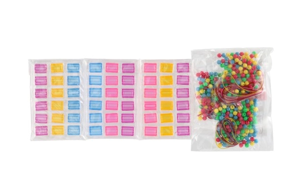- Műanyag gyöngyök, rugalmas gumiszálak, hab matricák