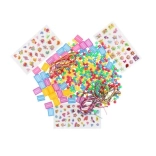 A csomagban négyzet alakú elemek, különböző formájú és színű műanyag gyöngyök, rugalmas gumiszálak és hab matricák találhatók az egyedi stílus megalkotásához. Szuper választás otthoni kézműveskedéshez, gyerekzsúrokra vagy ajándéknak.
