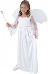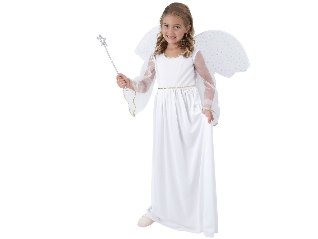 A gyerek angyal jelmez egy kedves, ragyogó tündérré varázsolja kislányát. Kényelmes szabásának és könnyű anyagának köszönhetően egész nap kényelmes viselet. A fehér szín és az angyalszárnyak látványos megjelenést biztosítanak, amely minden eseményen kitűnik.