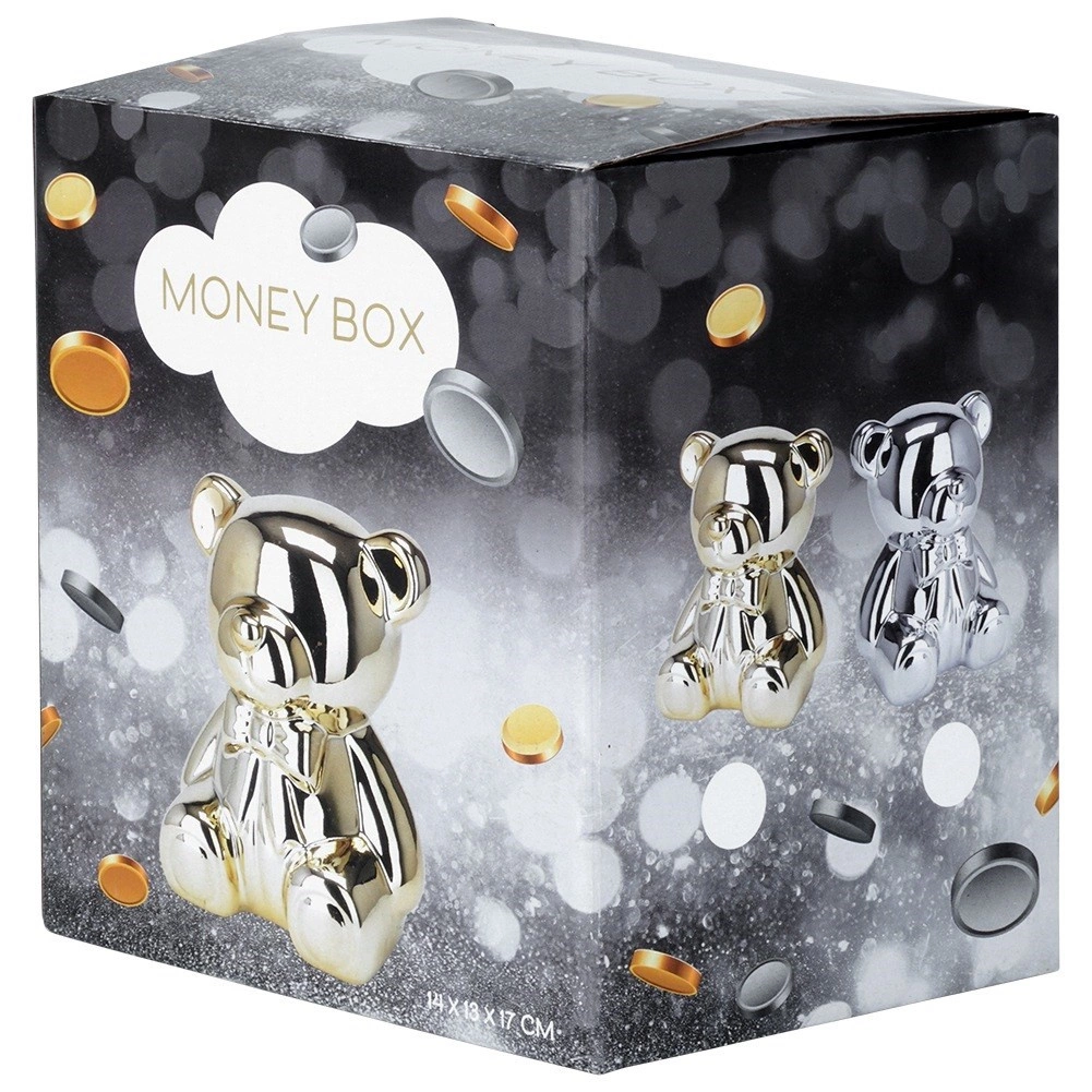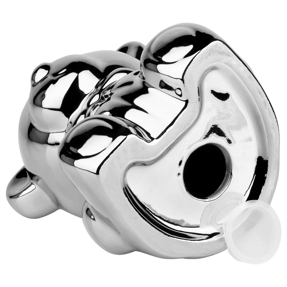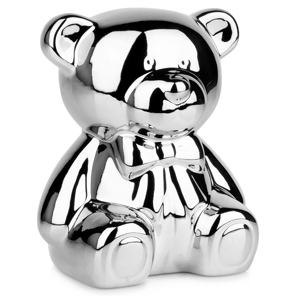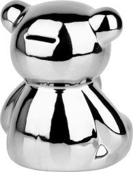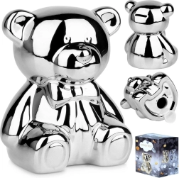 Elegáns maci alakú persely tükörfényes ezüst felülettel, amely szépen veri vissza a fényt, és stílusos dekorációként és praktikus megtakarítási helynek is kiváló. Az alsó nyitható résznek köszönhetően a pénzérmék könnyen kivehetők törés nélkül. Ideális ajándék gyerekeknek és felnőtteknek egyaránt.