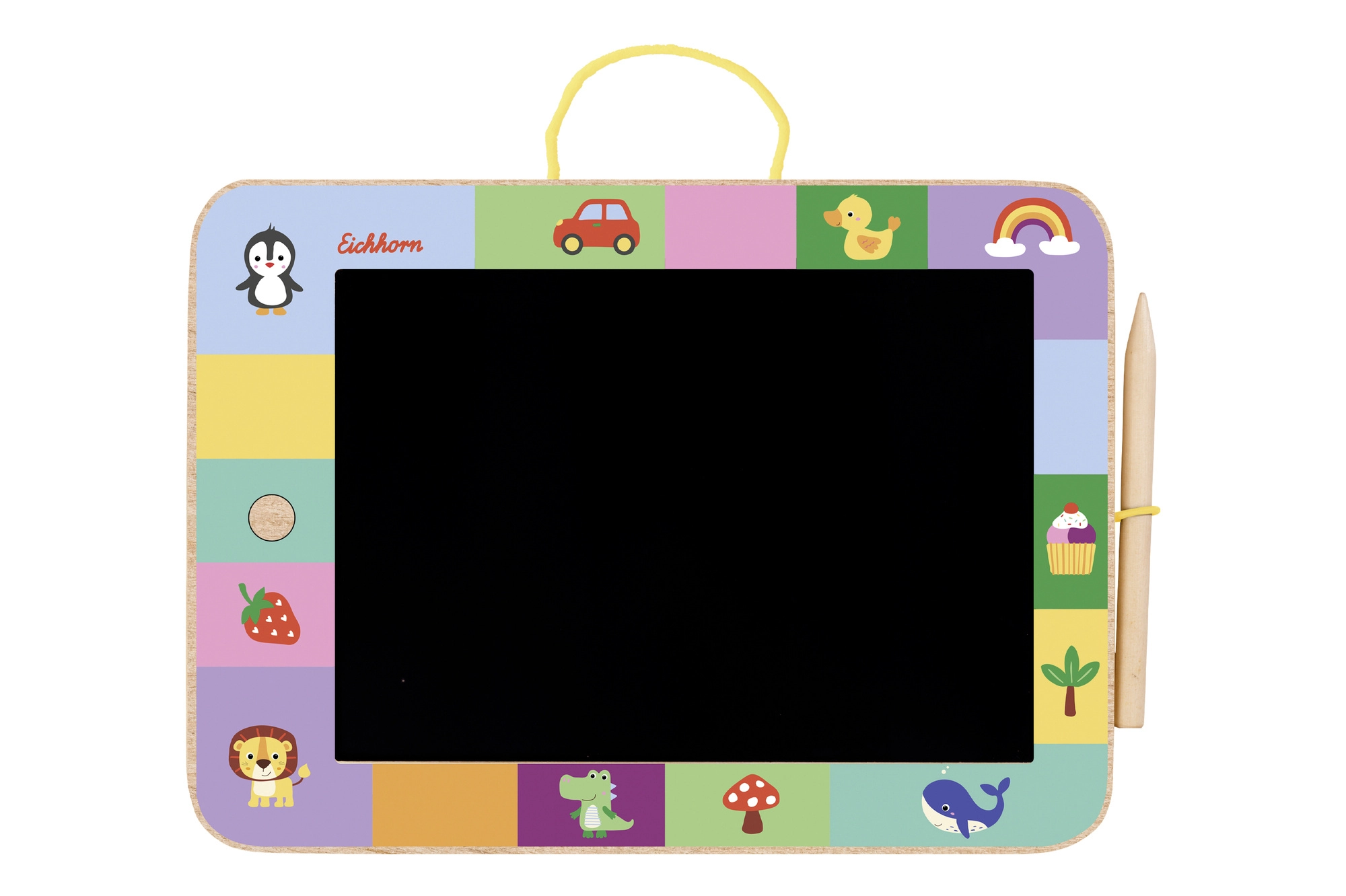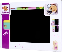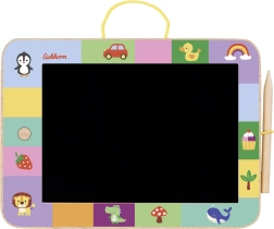 A fa rajztábla remek választás 3 éves kortól a kis művészeknek. A minőségi fa kivitel lekerekített sarkokkal biztonságos használatot garantál, míg a fekete felület rajzolásra, írásra és az első betűk gyakorlására csábít. Tartozik hozzá egy praktikus fa vonalzó, amely kényelmesen illik a gyerekek kezébe.