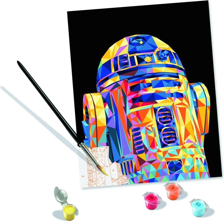 Váljon egy időre festővé, és készítse el saját művét az ikonikus R2‑D2 droiddal. A megszámozott felületeknek és a mellékelt útmutatónak köszönhetően a folyamat egyszerű, mégis rendkívül kielégítő. A kitöltött területek tiszta, részletgazdag képet adnak, amelyet száradás után a mellékelt keretbe helyezhet.