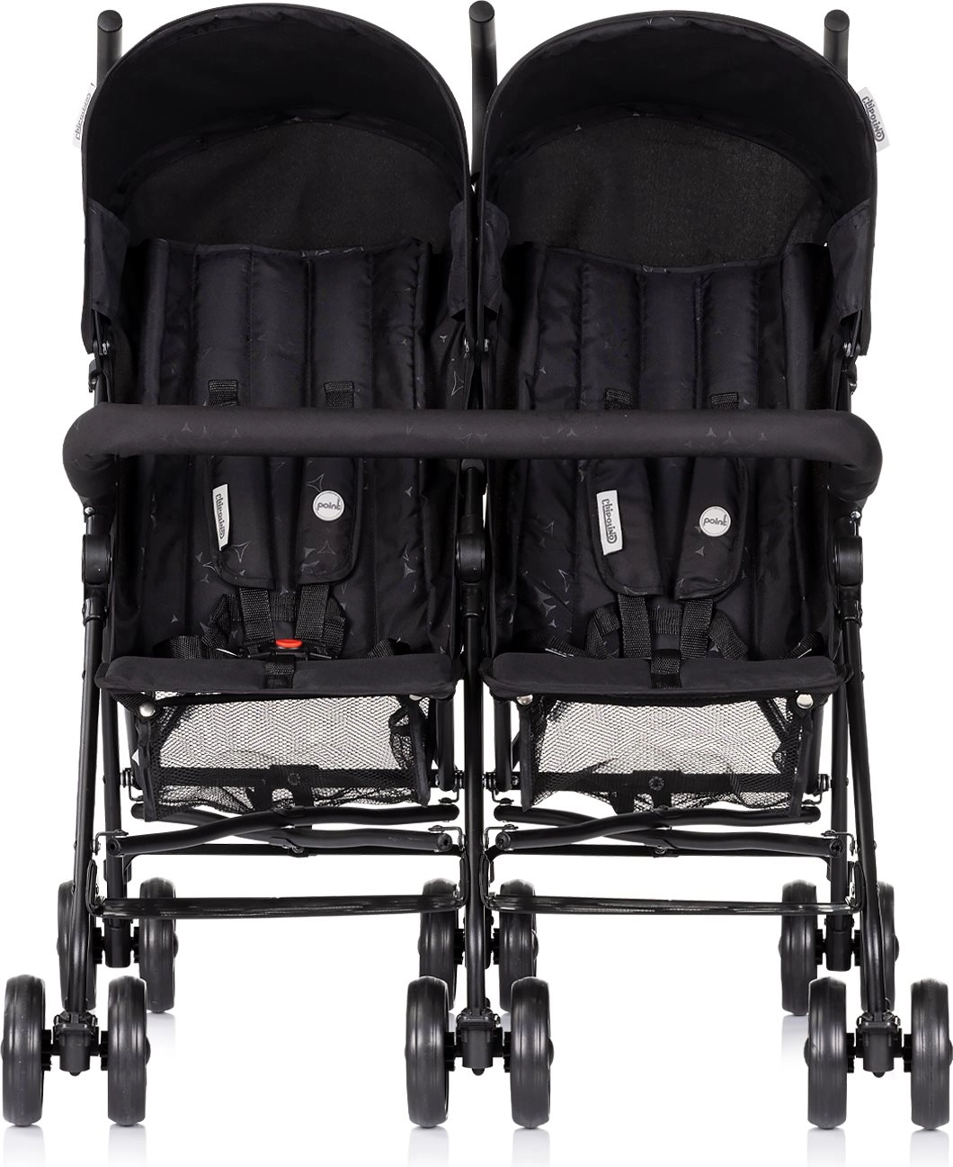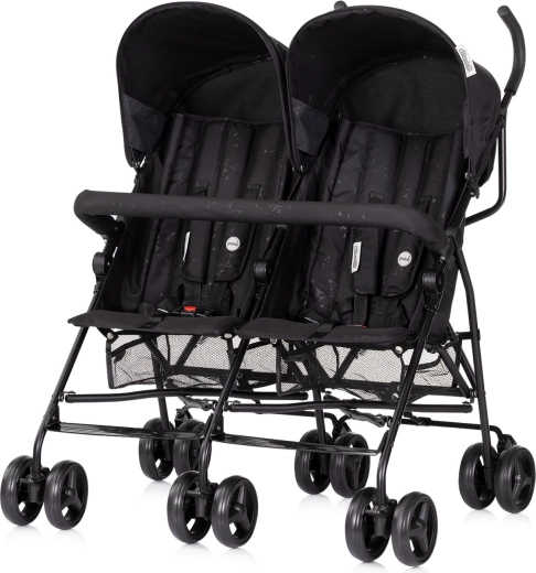 A Chipolino Double Point Blackberry praktikus és megbízható babakocsi két, egymás mellett ülő gyermek számára. A könnyű váz és az „esernyő” jellegű, helytakarékos összecsukás megkönnyíti a szállítást és a tárolást, míg az állítható háttámlák és a puhán párnázott, 5 pontos övek biztonságot és kényelmet nyújtanak. A lehajtható kupolák védenek a napsütéstől, a közös első kapaszkodó pedig további biztonságot ad.