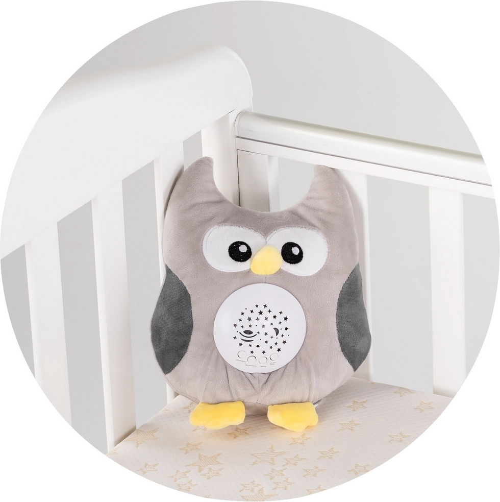 Változtassa a gyerekszobát biztonságos, meghitt alvóhellyé. A Chipolino plüss bagoly finoman vetíti ki az RGB színű csillagokat és holdacskákat, és kellemes hangokkal kíséri a gyermeket – az altatódalaktól a méhre vagy a természetre emlékeztető fehér zajig. Az egyszerű vezérlést sötétben is könnyű használni.