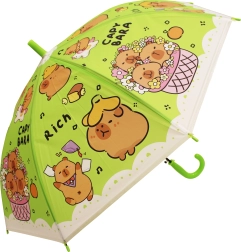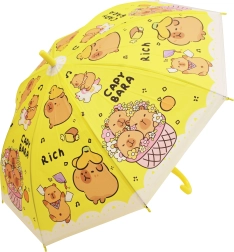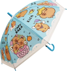 A 50 cm hosszú kapibarás gyerek esernyő megbízható védelmet nyújt az eső ellen, és vidám megjelenésével a gyerekek kedvence lesz. A színes változatok (kék, zöld, sárga, lila) „CAPYBARA” felirattal és aranyos illusztrációkkal stílusos kiegészítők az óvodába és sétákhoz.