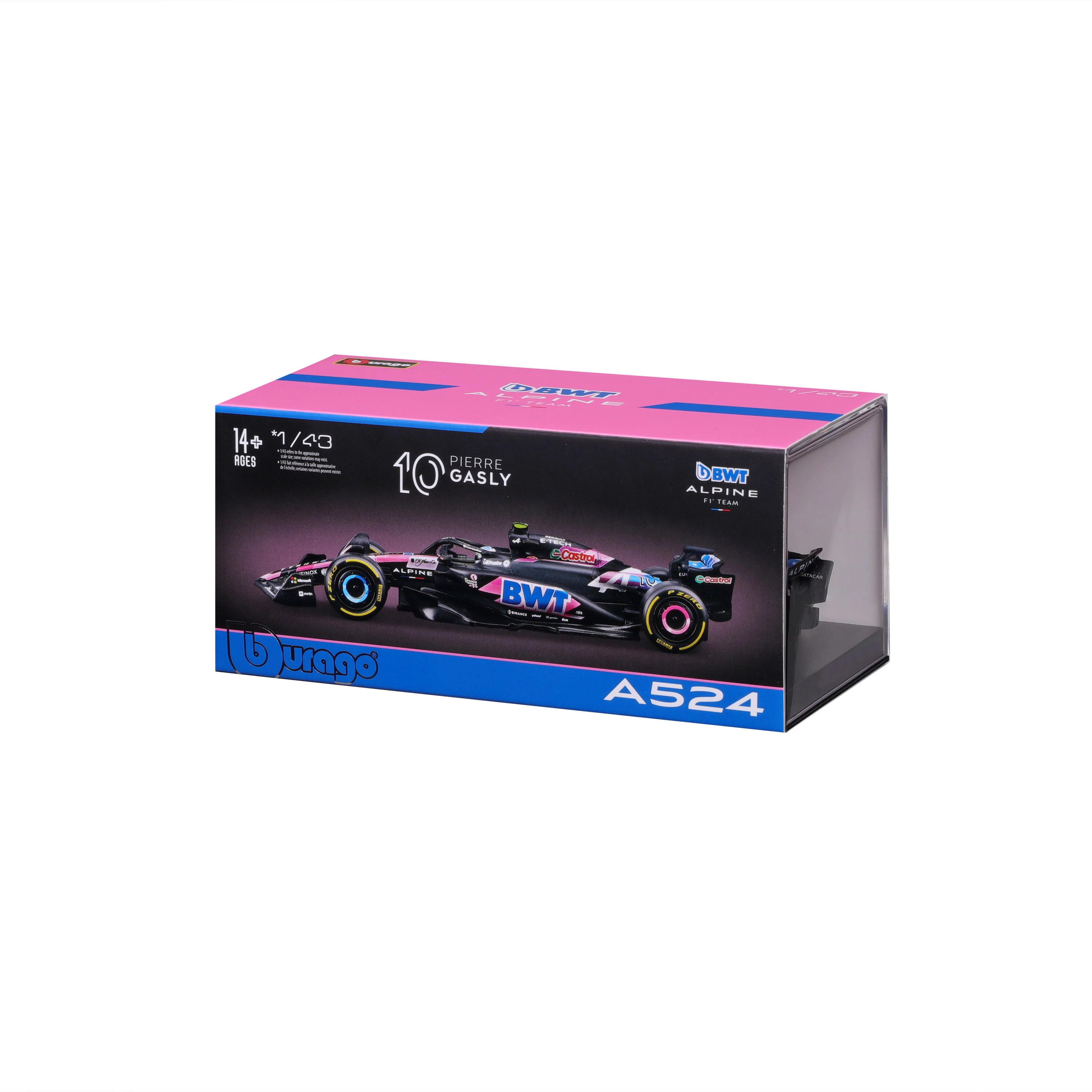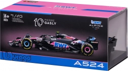 Élje át a Forma–1 hangulatát a részletgazdag ALPINE A524 BWT modellel ikonikus fekete–kék–rózsaszín kivitelben. Az 1:43 méretarányú modell hűen adja vissza az aerodinamikai szárnyakat, a halo rendszert, a slick gumikat és a versenyzői kokpitot Pierre Gasly figurájával.