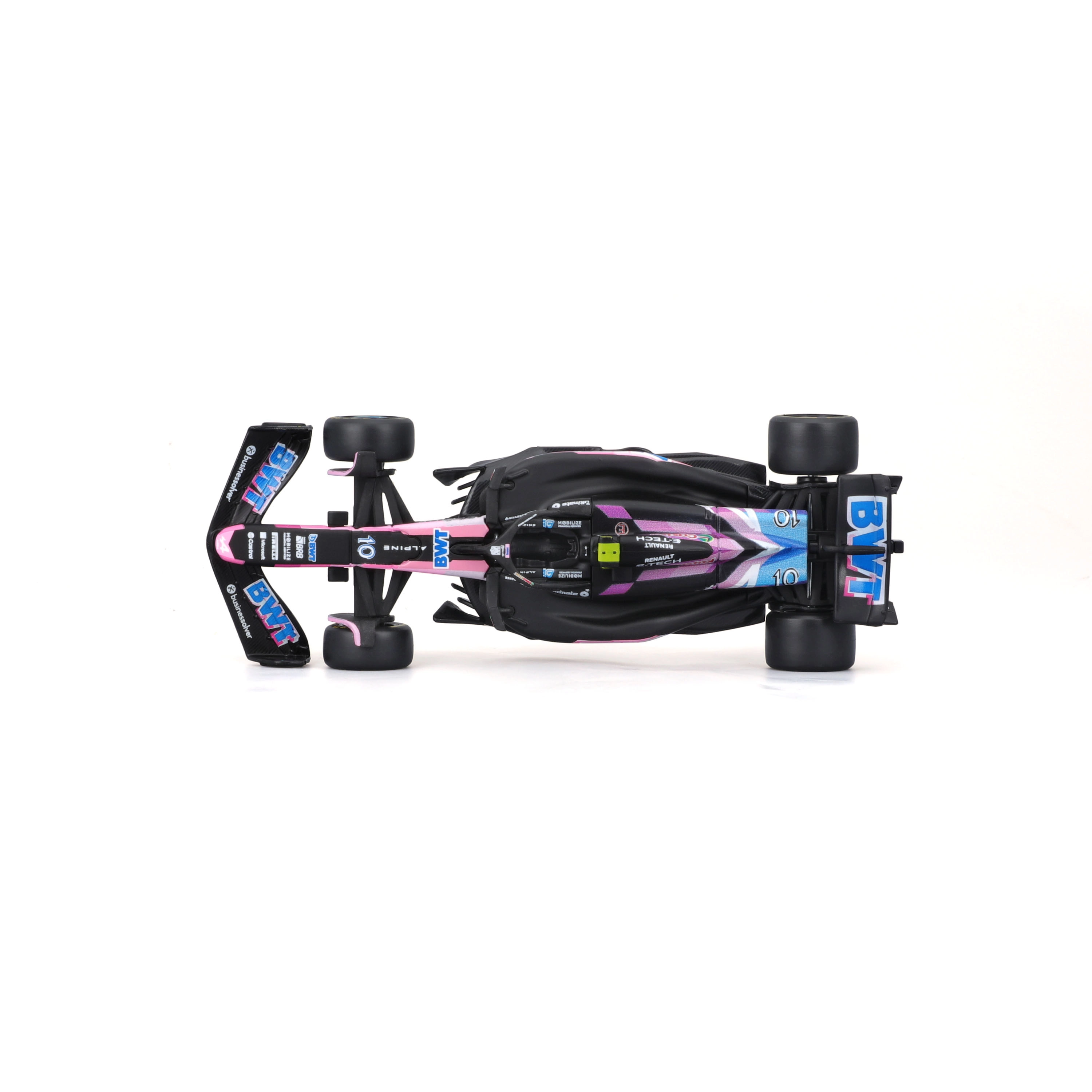 Hű aerodinamikai részletek, pontos BWT színek és a #10 rajtszám Pierre Gasly számára a maximális gyűjtői hatásért.