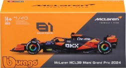 Ez a részletgazdag McLaren MCL38 – Miami Grand Prix 2024 modell az F1 modern aerodinamikáját ragadja meg 1:43 méretarányban. A fém karosszéria valósághűen csillog, a pontos szponzornyomatok és a színes kerékakcentusok hűen adják vissza a valódi monopostó megjelenését.