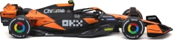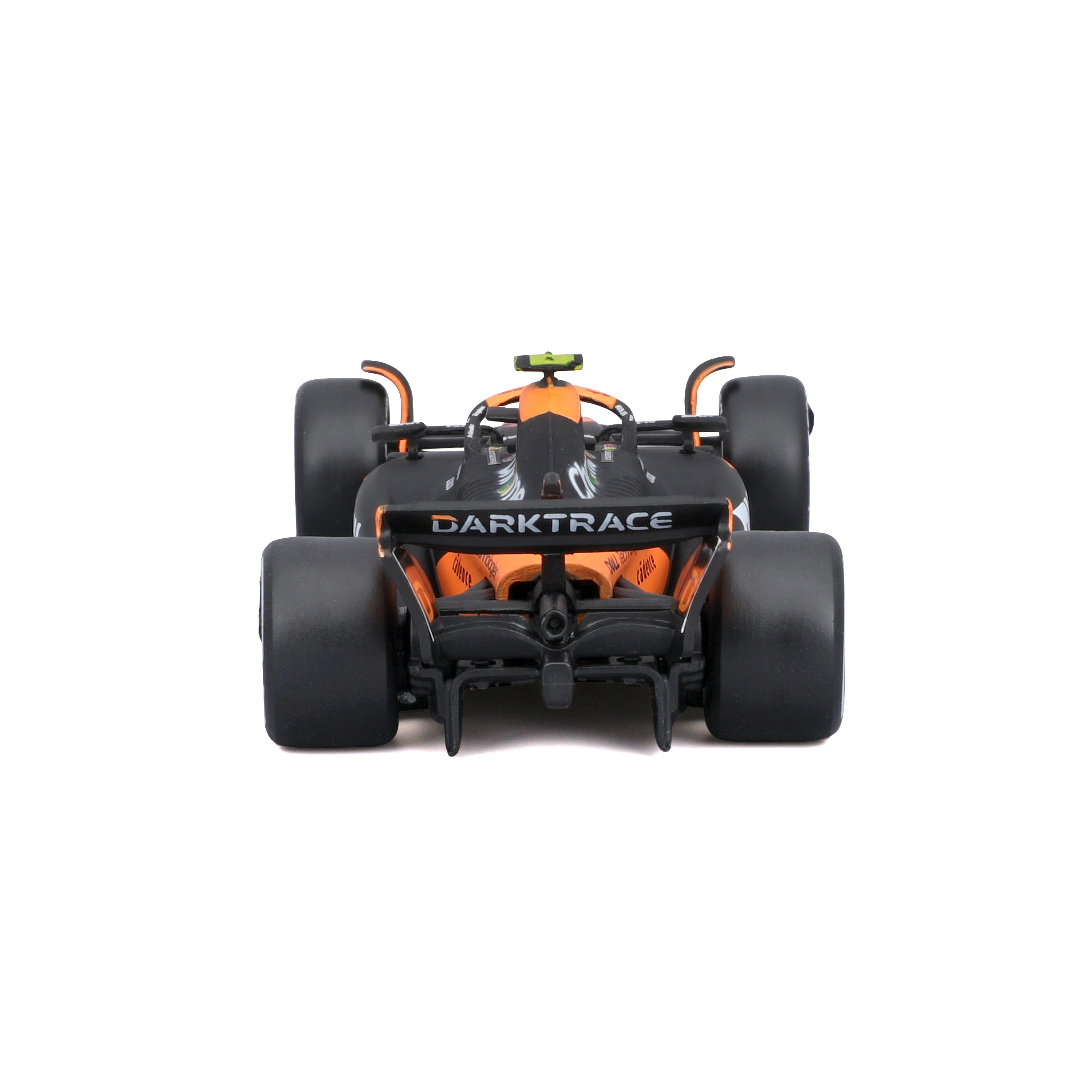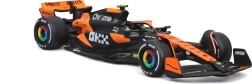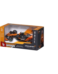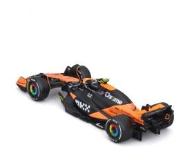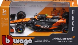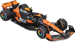 Ez a hivatalosan licencelt, fém F1 modell a Bburagótól az McLaren MCL38 Senna kiadásának autentikus megjelenését hozza el. Kiemelkedik a karosszéria pontos formájával, a markáns narancs‑fekete fényezéssel és a gondosan kidolgozott részletekkel, mint a szárnyak, a halo és a partnerek logói.