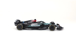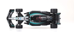 A realisztikus szponzorfeliratoknak, a fekete „stealth” fényezésnek türkiz akcentusokkal, valamint a szabadon forgó kerekeknek köszönhetően a modell remek kiegészítője a vitrineknek és kiváló ajándék az F1 és George Russell rajongóinak. A kompakt 1:43 méretarány megkönnyíti a kiállítást és a teljes csapatkollekció gyűjtését.