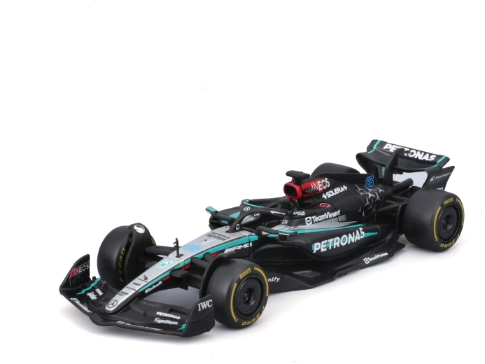 Ez a Bburago fém modell a MERCEDES‑AMG PETRONAS F1 W15 2024-es szezonbeli versenygépének hiteles megjelenését hozza el. Kiemelkedik pontos arányaival, minőségi fényezésével és finom részleteivel, amelyek kiemelik az aerodinamikát, a szárnyakat és a kokpitot a halo rendszerrel.