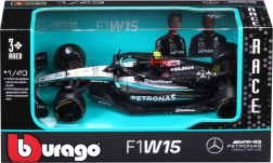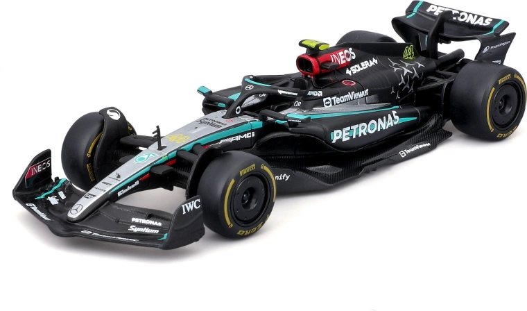 Fedezd fel a Mercedes‑AMG Petronas F1 Team versenygépének precíz miniatűrjét, a W15 Performance (2024) kiadást. A Bburago modellje hűen adja vissza az aerodinamikai formákat, a szponzori logókat és az ikonikus fekete‑türkiz fényezést. Ideális gyűjteménybe, irodába vagy a sebesség szerelmeseinek gyerekszobájába.