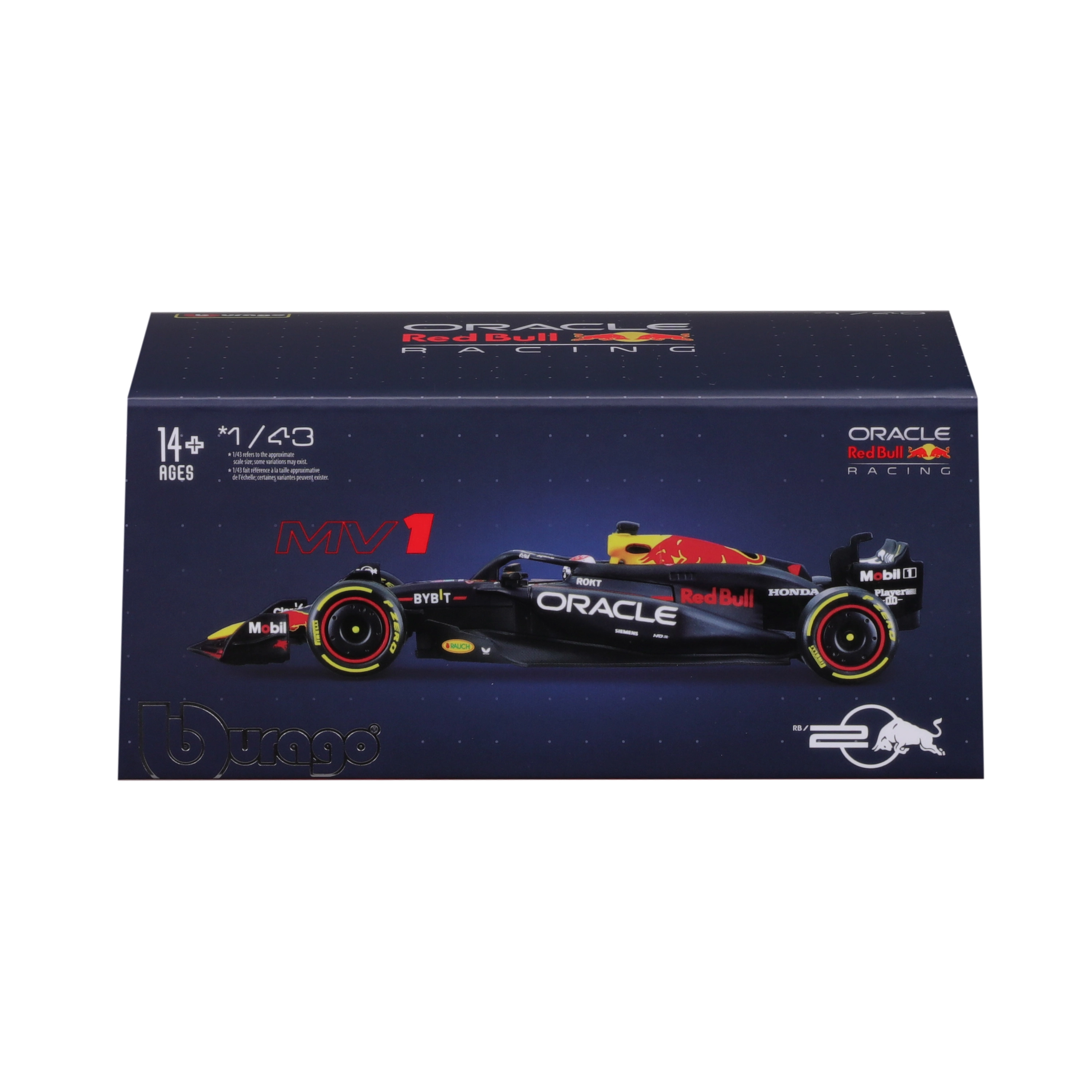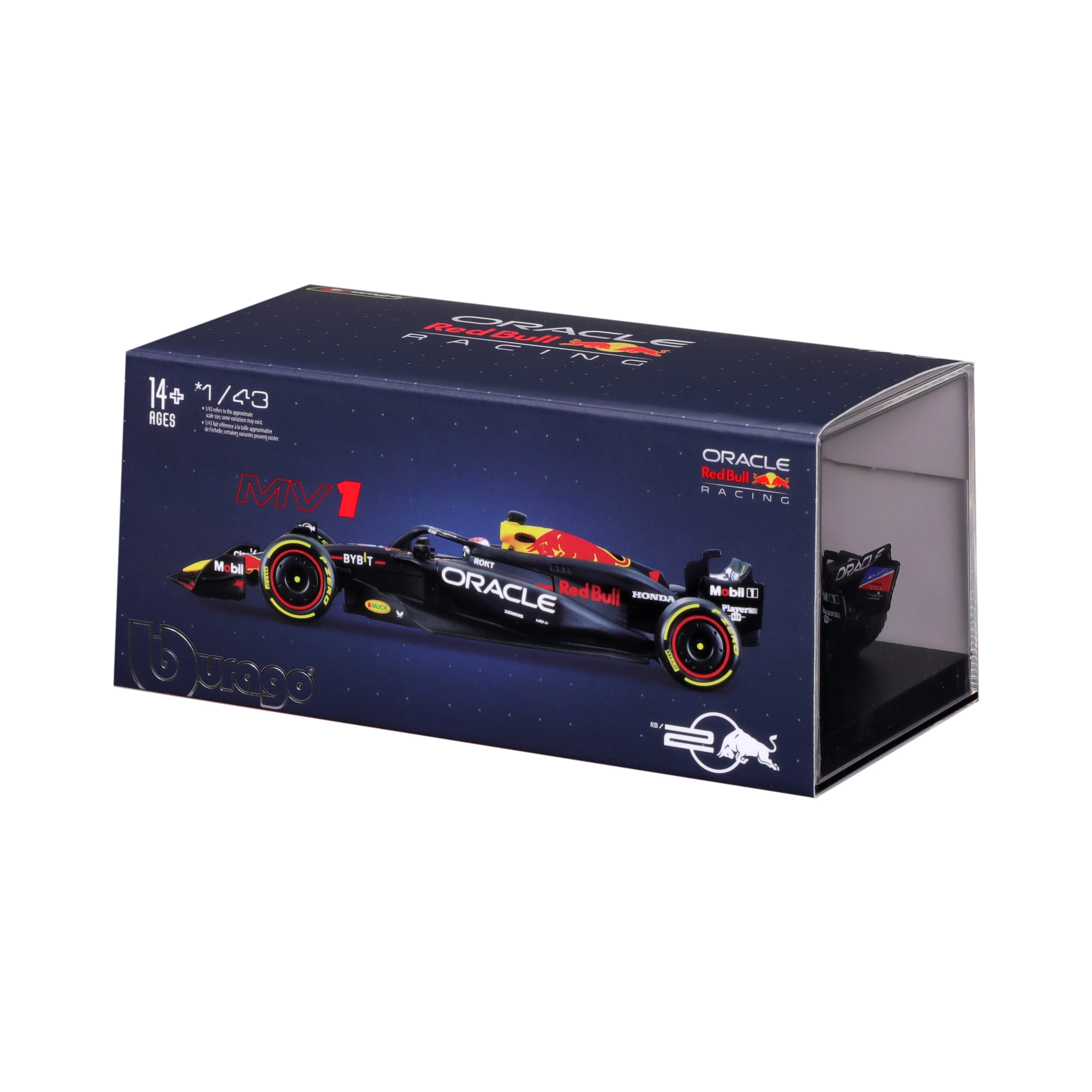 Slick gumik feliratozással és részletes ORACLE RED BULL RACING festés, amely valósághű megjelenést kölcsönöz.
