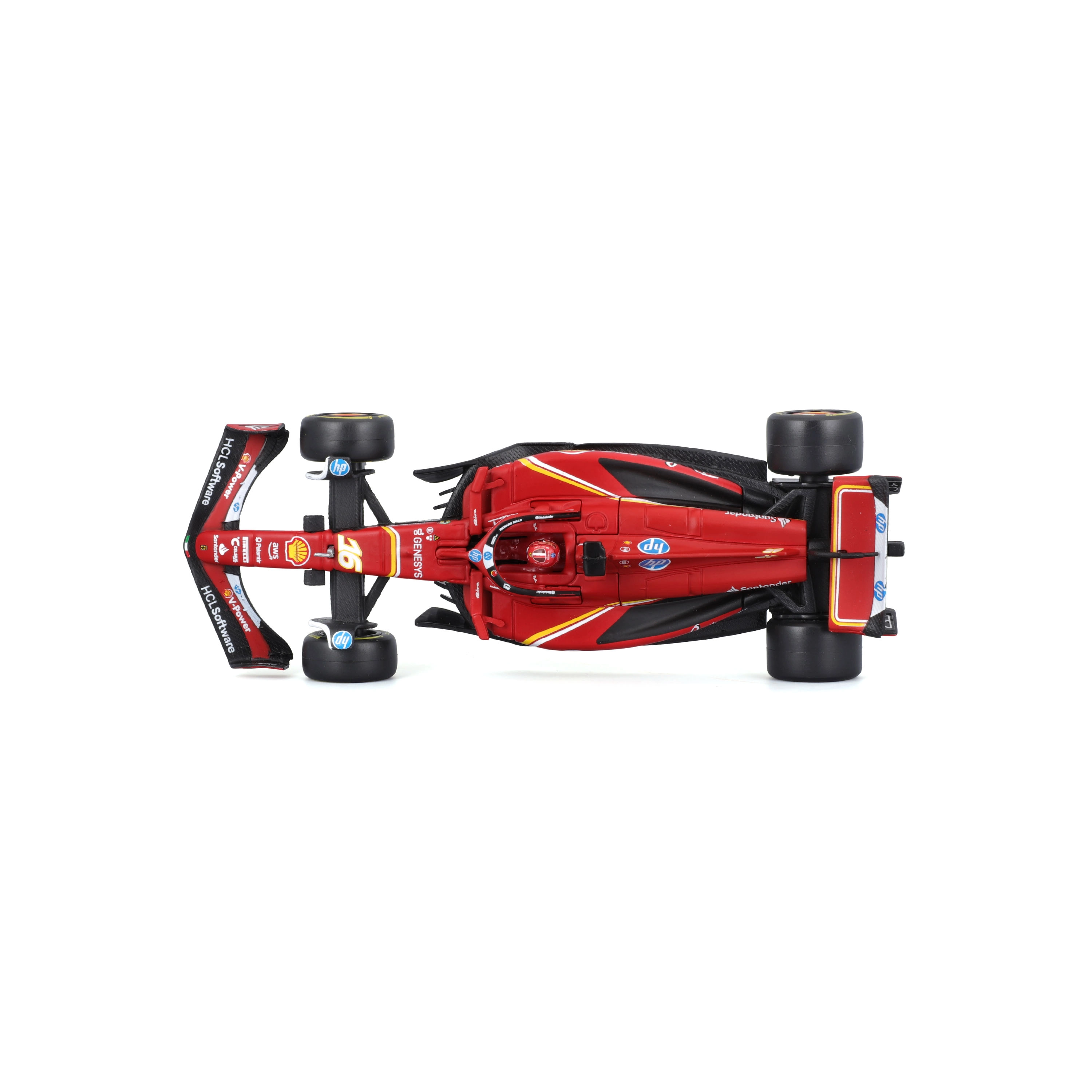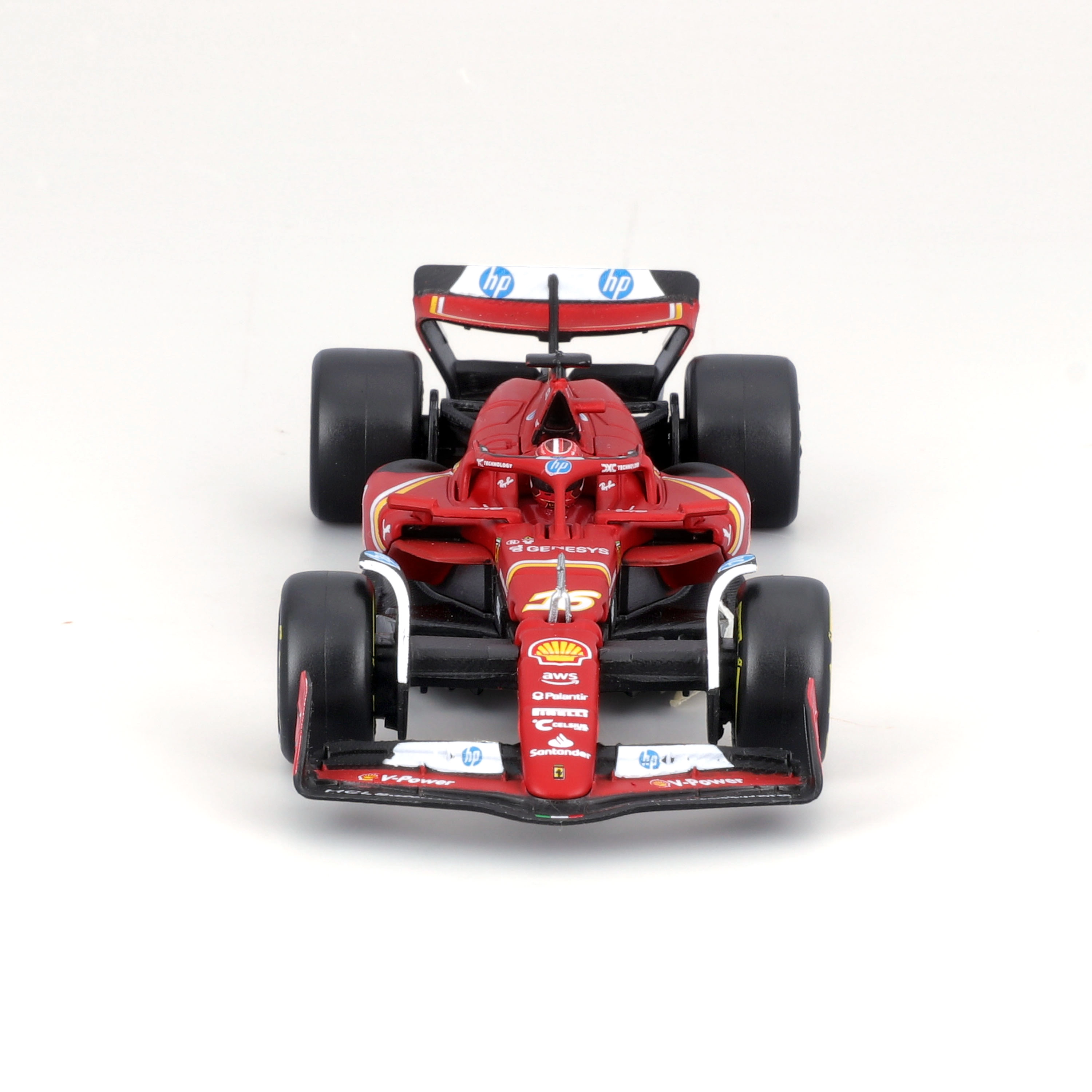 Ez a hivatalosan licencelt Ferrari SF-24 (2024) Bburago modell hűen adja vissza az együléses formavilágát, beleértve az első és hátsó szárnyat, a halo keretet és a versenyfestést a szponzori logókkal. A 1:43 méretarány ideális gyűjtői sorozatokhoz és kompakt kiállításhoz.