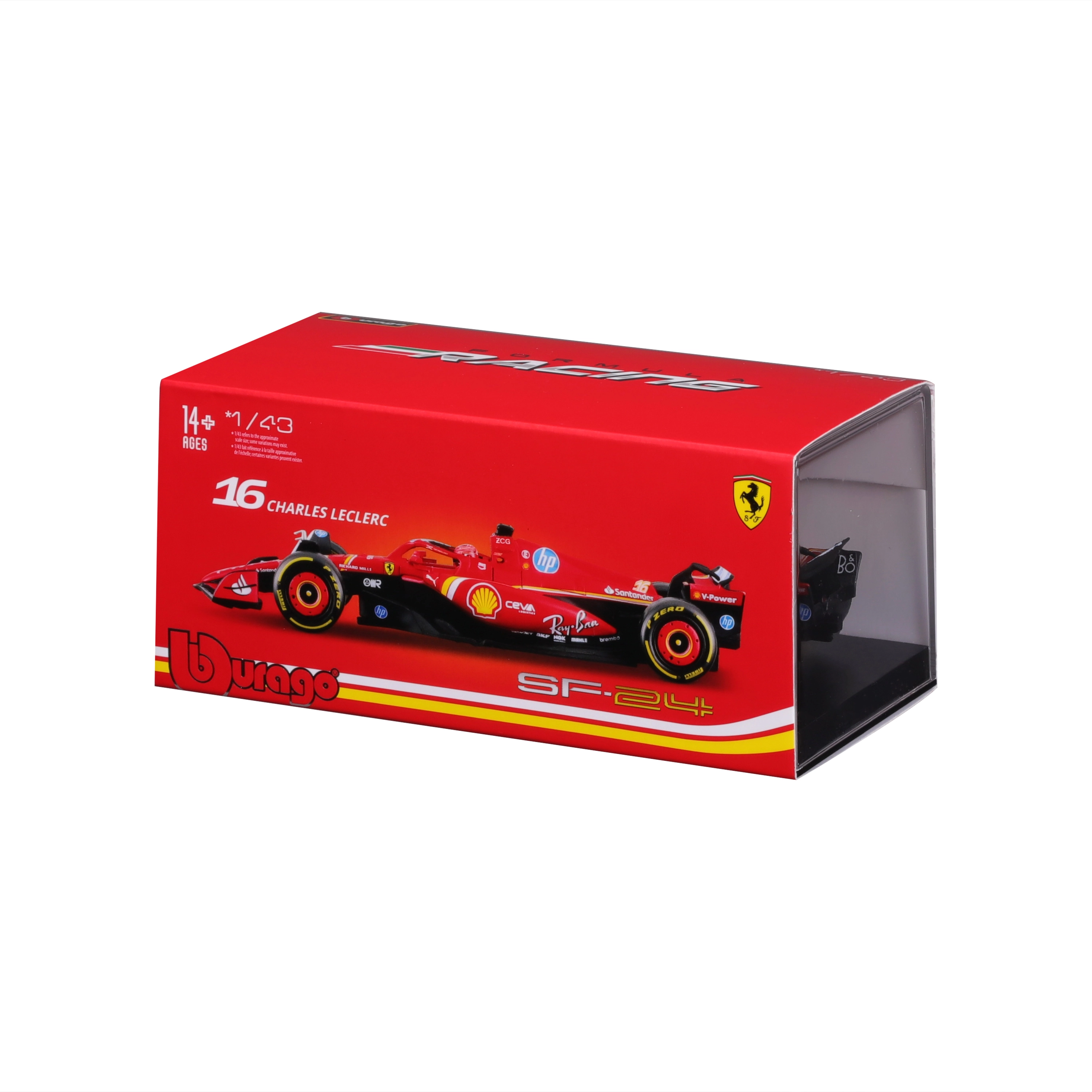 Részletes aerodinamikai elemek, pontos fényezés és a 16-os Charles Leclerc rajtszám az aktuális szezon autentikus megjelenéséért.