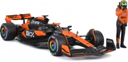Ez a precízen kidolgozott Forma–1-es modell minden McLaren-rajongót és modellgyűjtőt lenyűgöz. Éles karosszériavonalai, élethű kerekei és pontos dekáljai révén a valódi nagydíjas autó miniatűrjének hatását kelti. A csomag külön álló pilótafigurát is tartalmaz a stílusos elrendezéshez.
