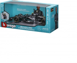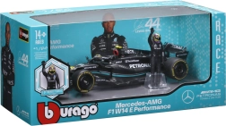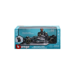 Az 1:24 méretarányú modell minőségi anyagokat és gondos részleteket egyesít: első és hátsó szárny, diffúzor, halo és pilótafülke. A kerekek szabadon forognak a hiteles prezentációhoz, a Bburago átlátszó vitrindoboza védi és elegánsan kiemeli a modellt.