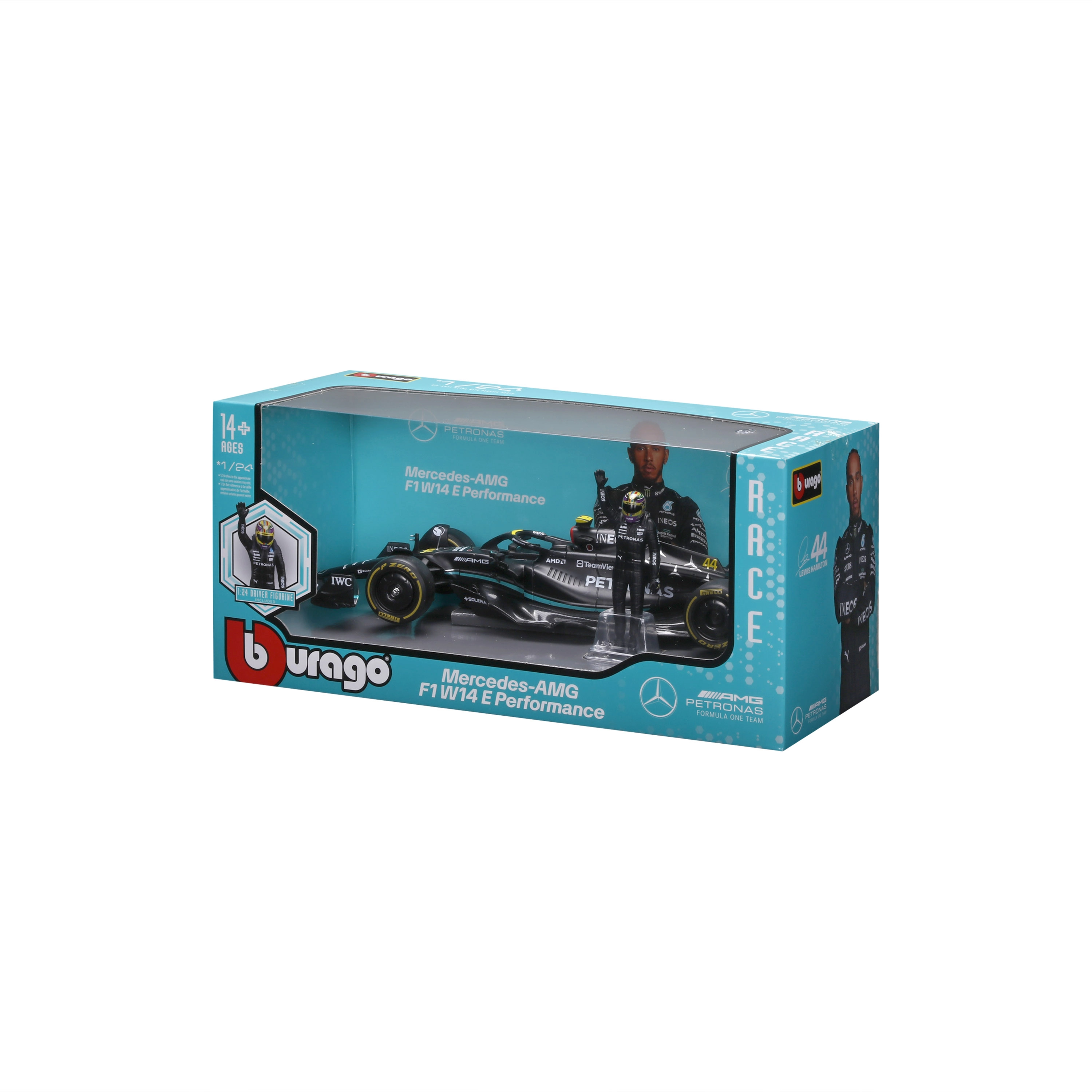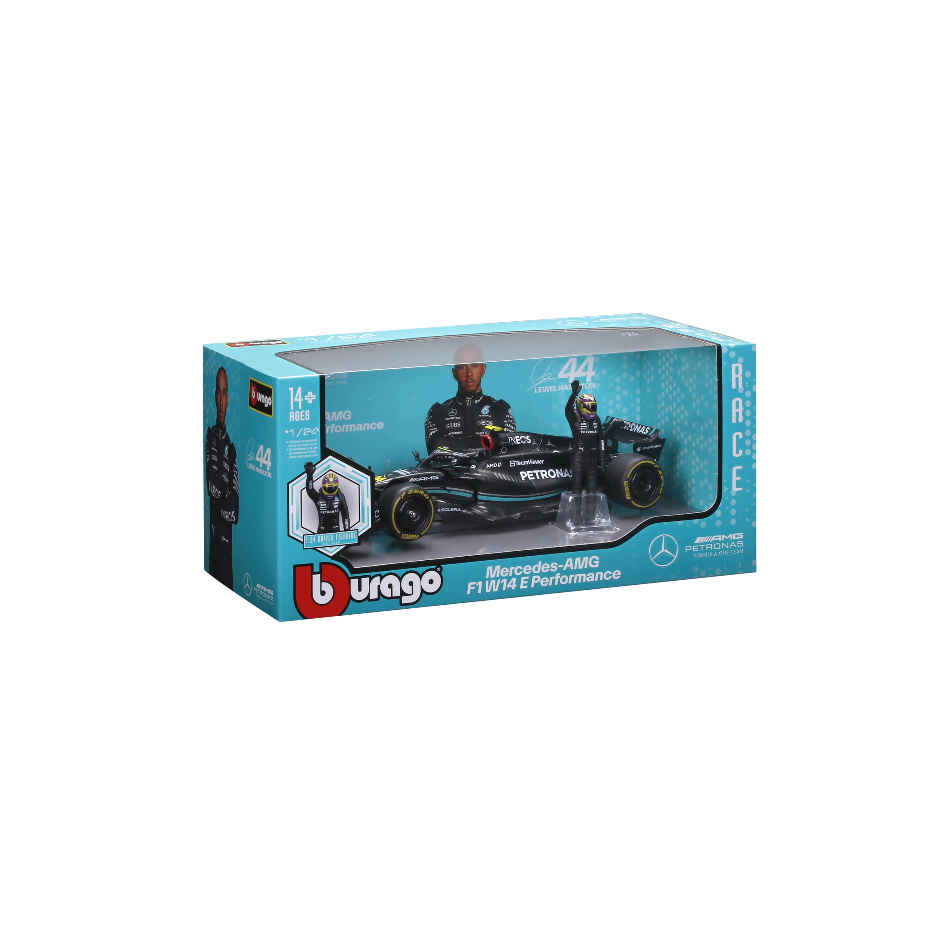 Élje át a Forma–1 hangulatát a precízen kidolgozott MERCEDES-AMG PETRONAS F1 W14 E modellel a 2023-as szezon színeiben. A 44-es rajtszámú hű karosszéria, az összetett aerodinamikai elemek, a realisztikus gumik és az autentikus matrica-grafika lenyűgöző darabbá teszik bármely gyűjteményben. A látványos kiállításhoz pilótafigura is tartozik.