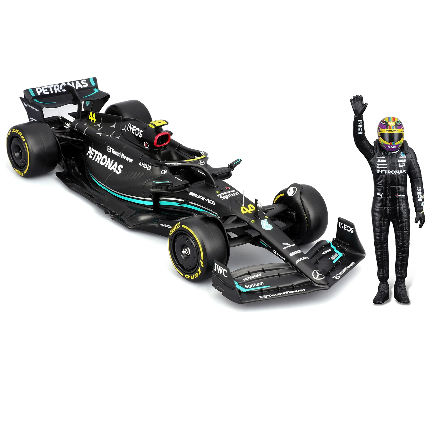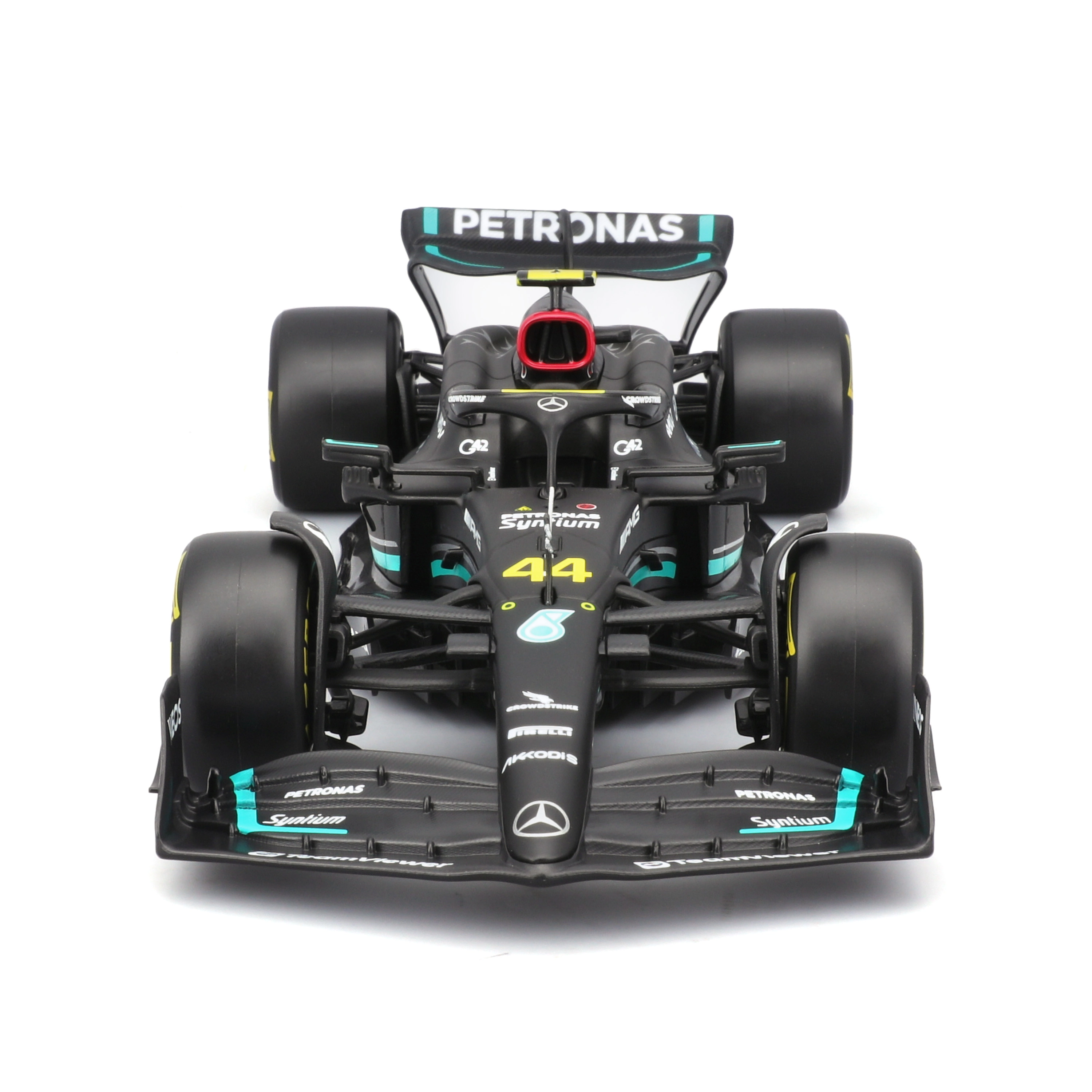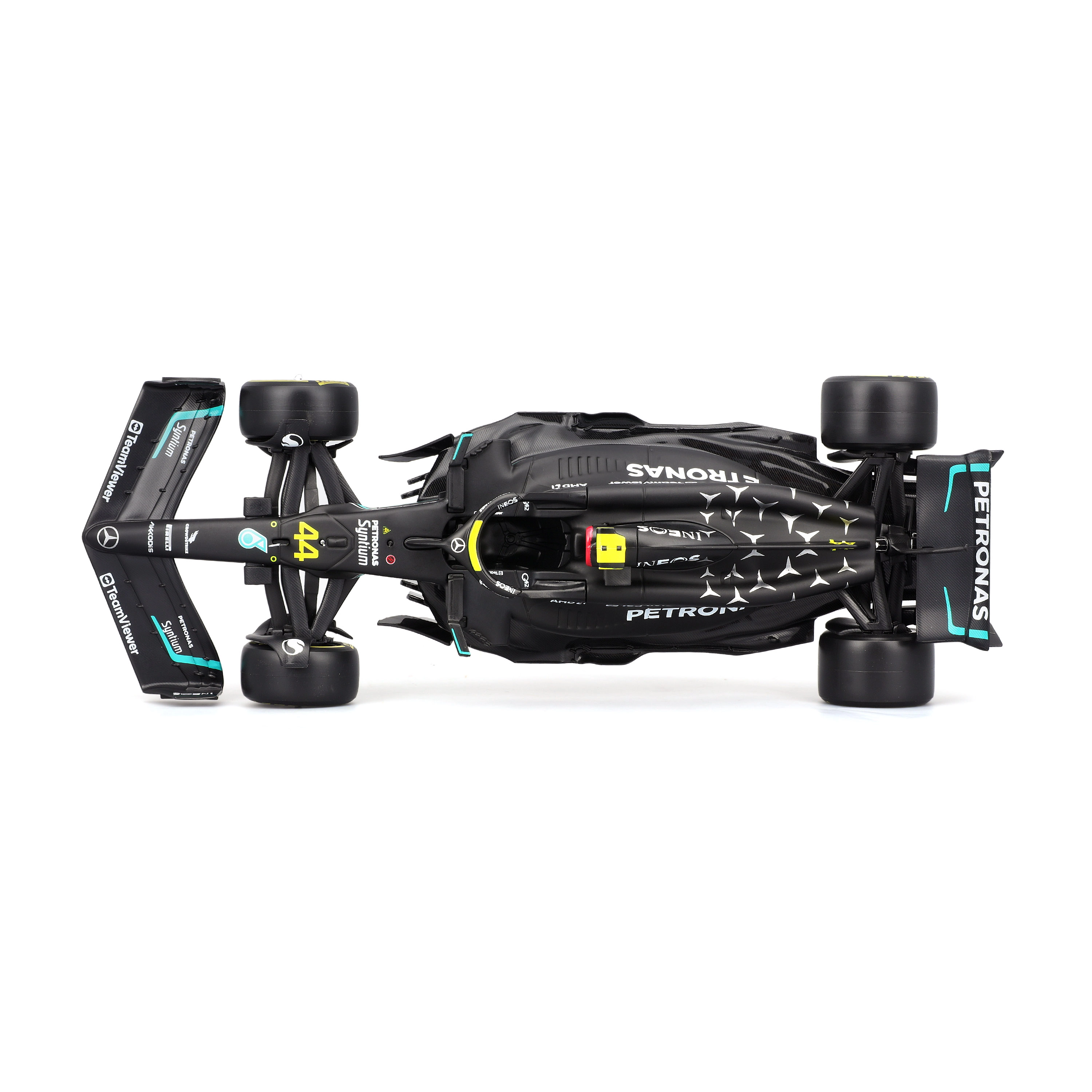 A részletes karosszéria, a pontos aero elemek és az autentikus PETRONAS színösszeállítás kiemelik a monoposzt verseny-DNS-ét.