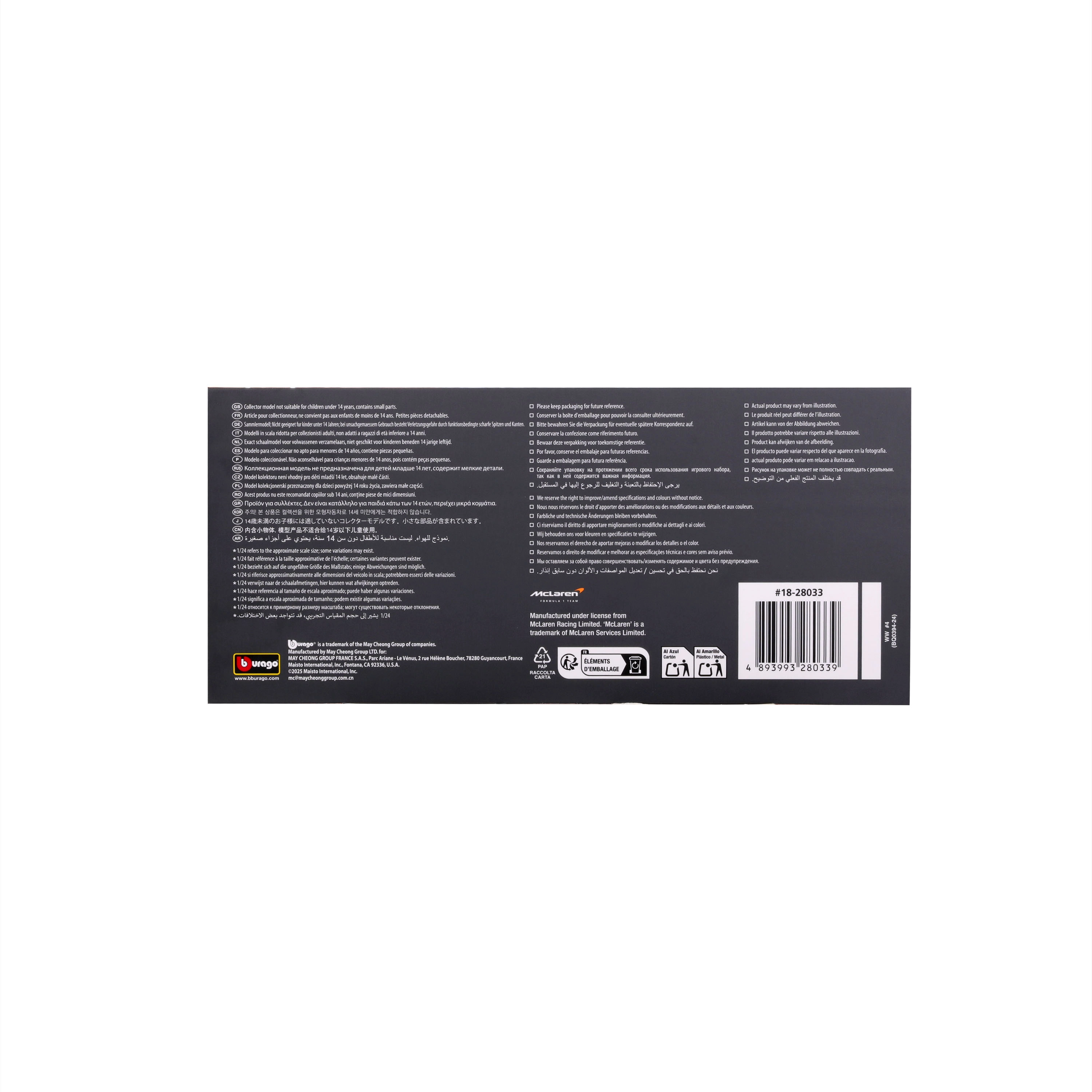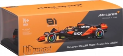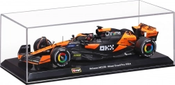 A „McLaren MCL38 – Miami Grand Prix 2024” feliratú, masszív akril vitrin biztosítja a biztonságos kiállítást és a por elleni védelmet. A forgó kerekeknek és a precíz lakkozásnak köszönhetően a modell rendkívül valósághű, ideális a motorsport szerelmeseinek, illetve ajándékcsomagként is kiváló.