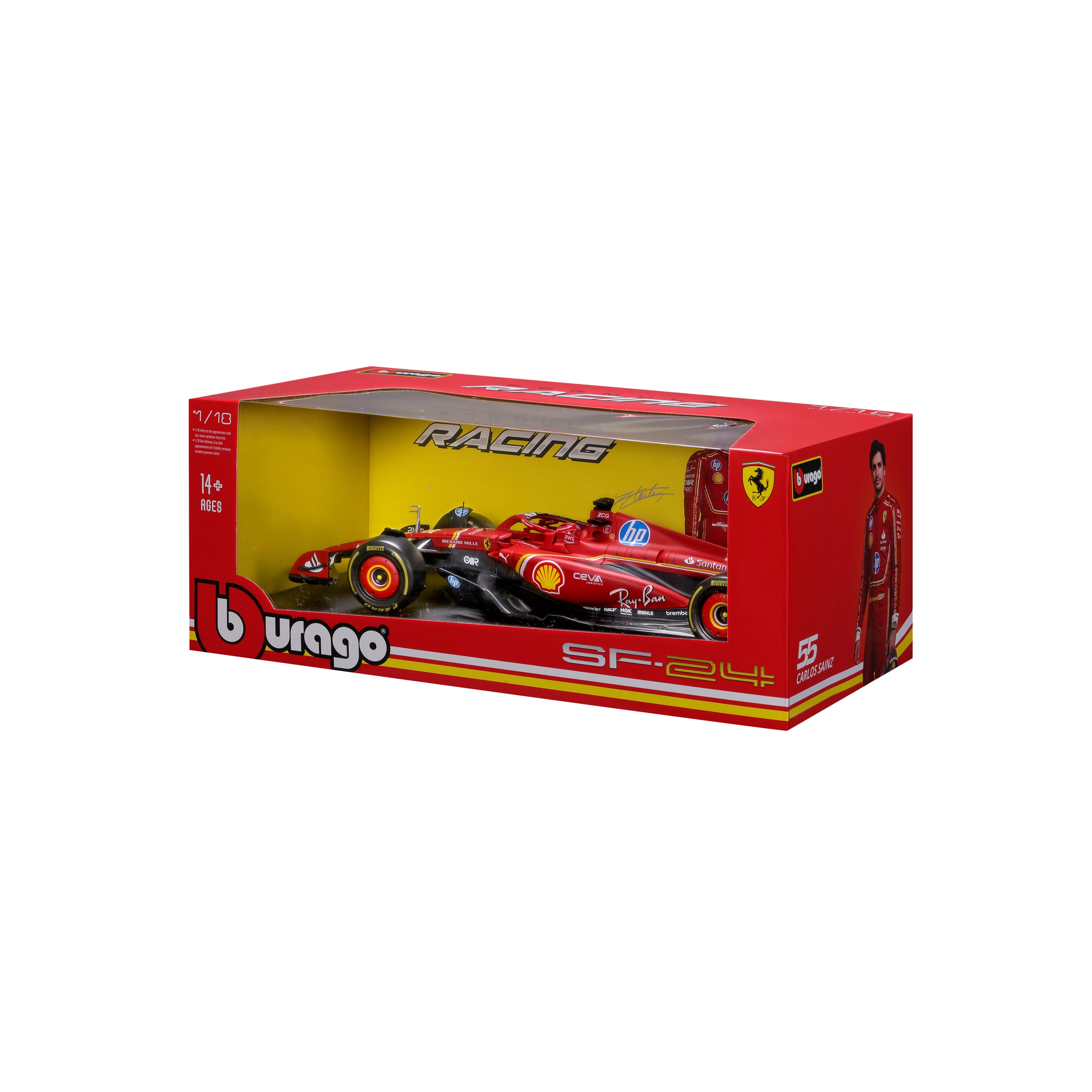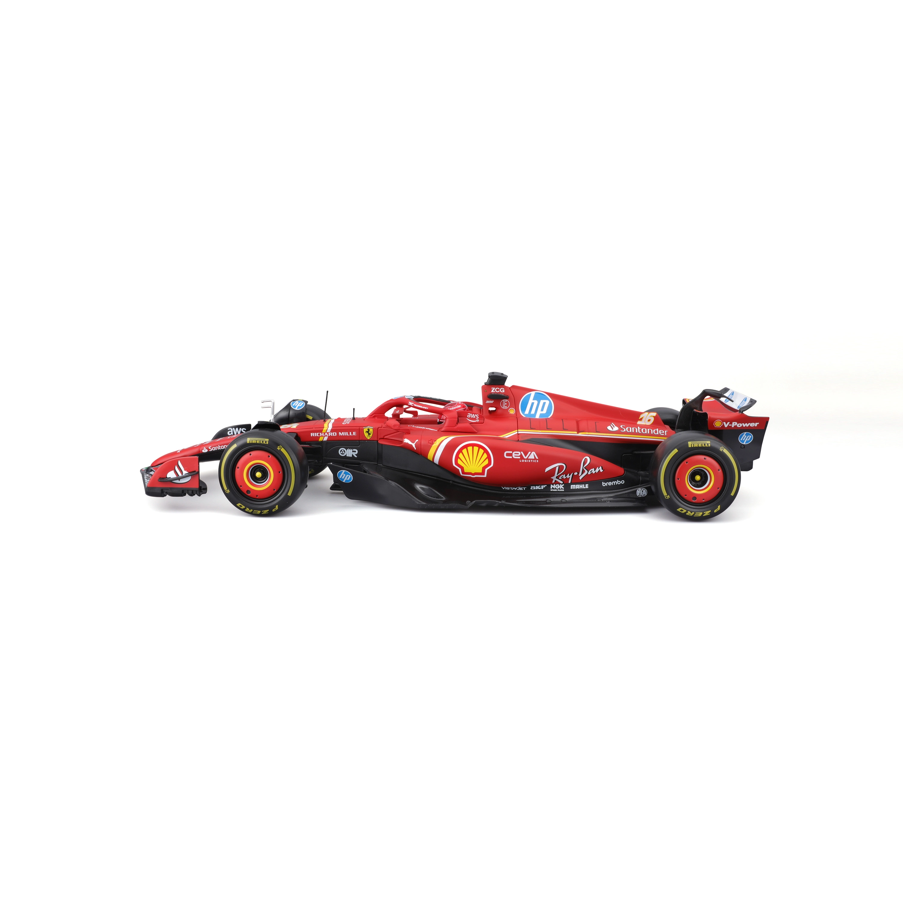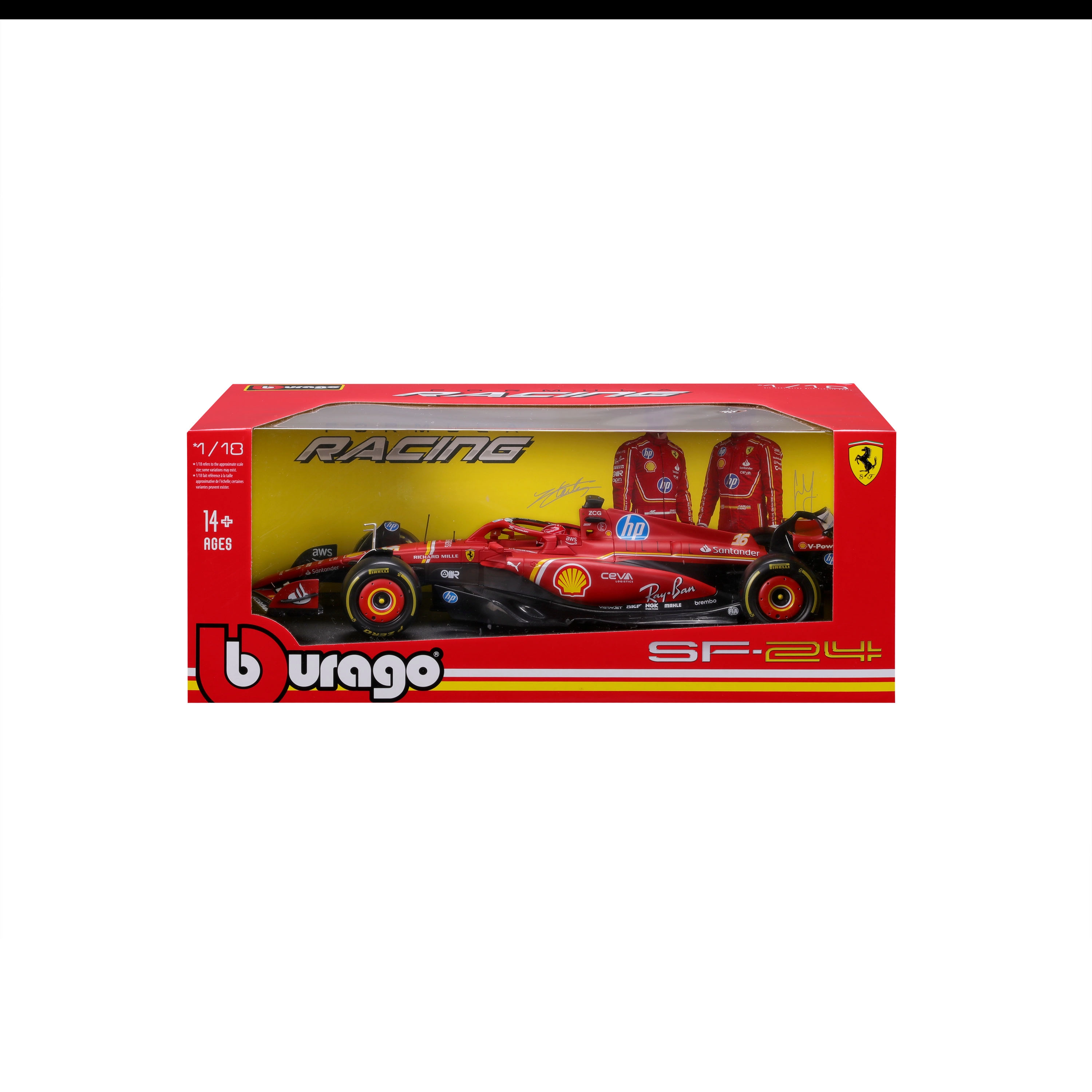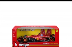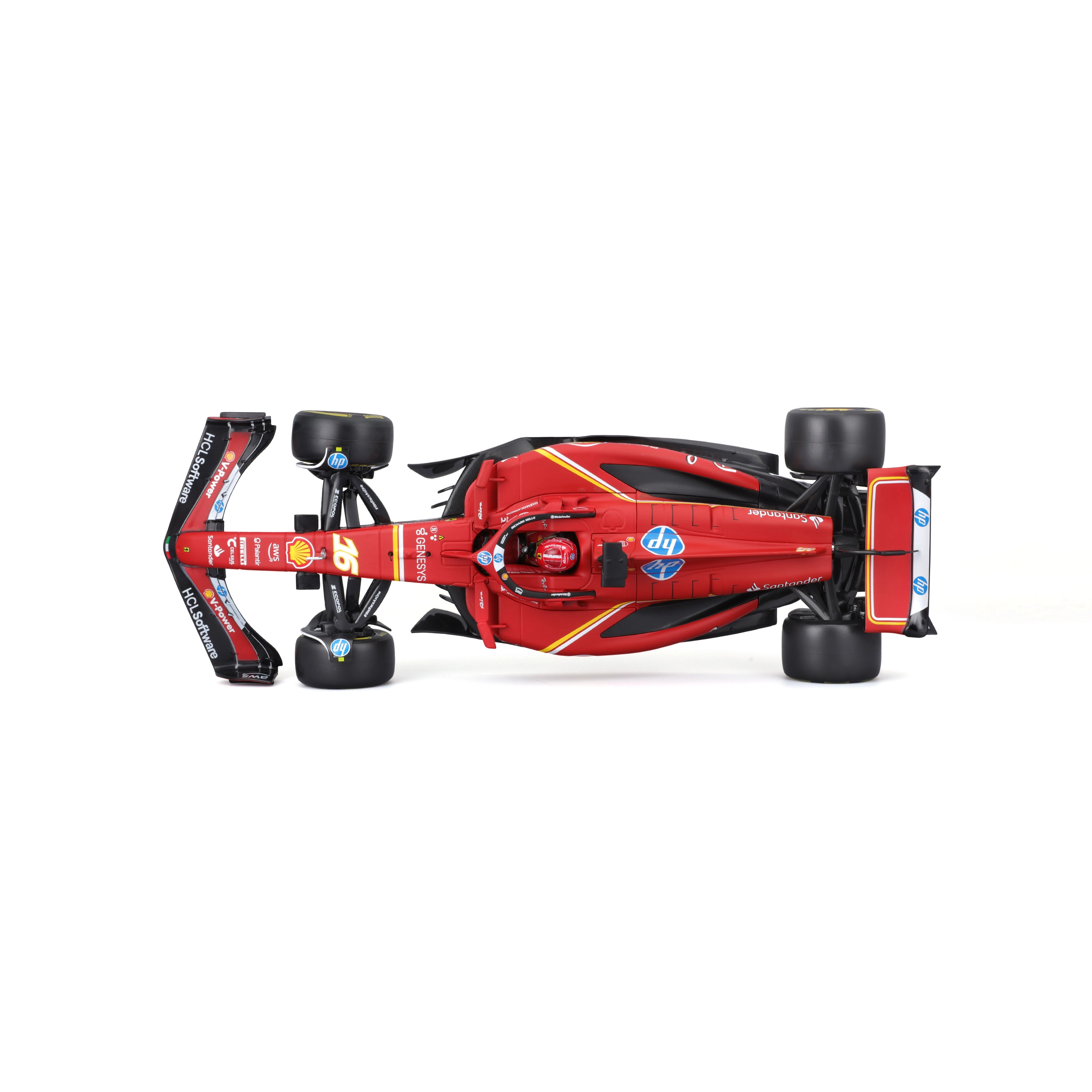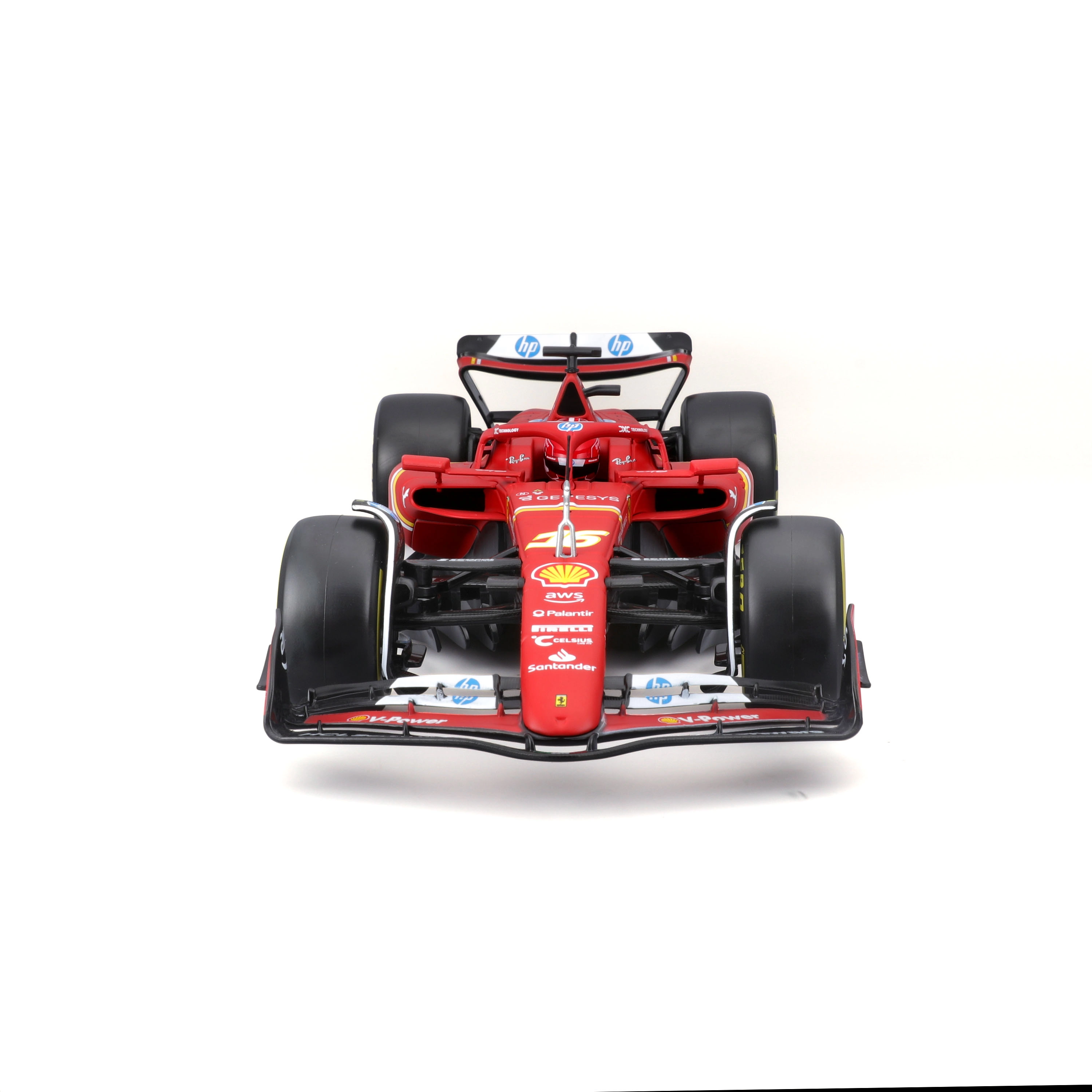 Ez a gyűjtői Bburago Ferrari SF-24 modell a 2024-es szezon aktuális együlésesét hozza el ikonikus piros színben, részletes szponzormatricákkal, valósághű kokpittel és halo védőelemmel. A modell lenyűgöz a precíz aerodinamikai kidolgozással – az első és hátsó szárnytól a diffúzorig és a futóműig.