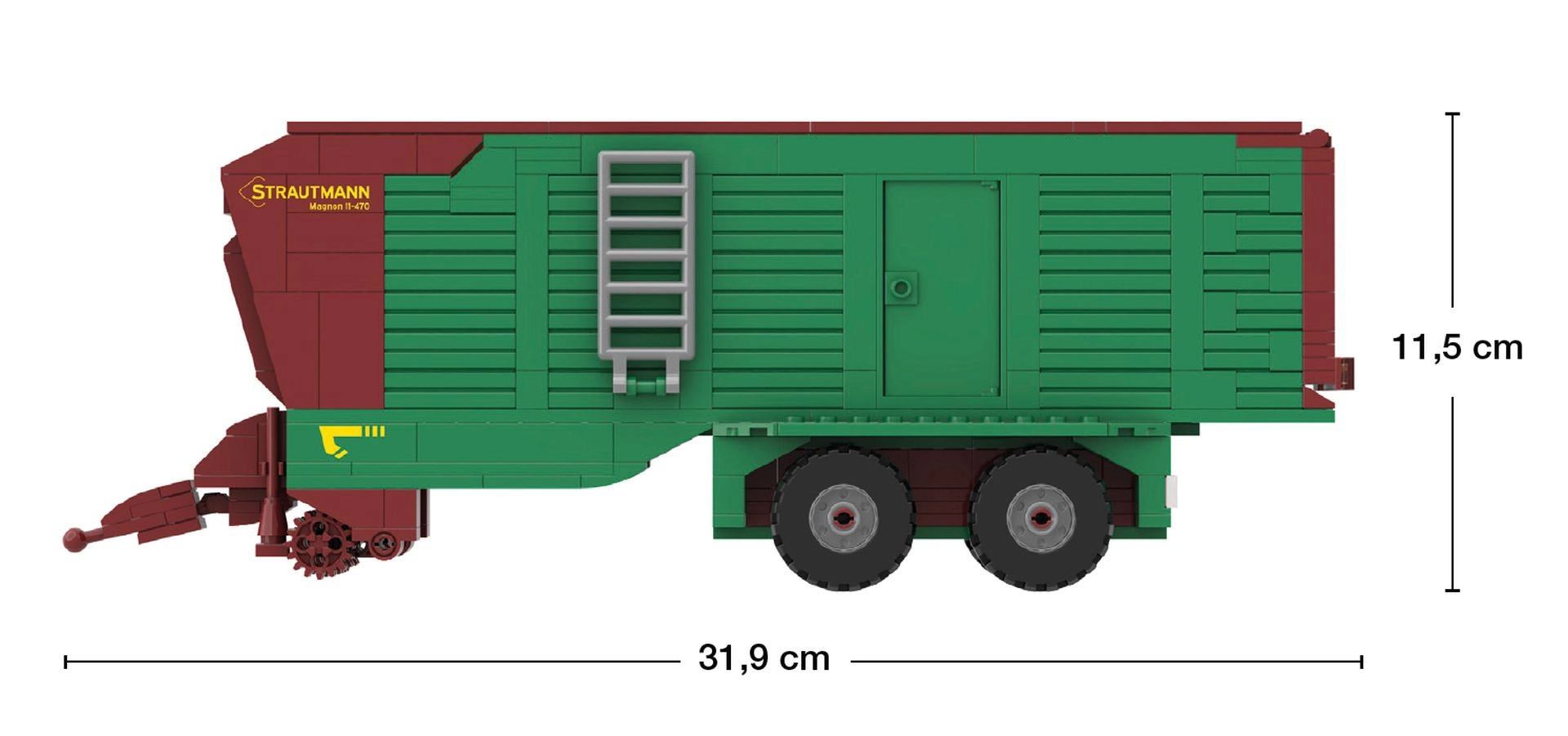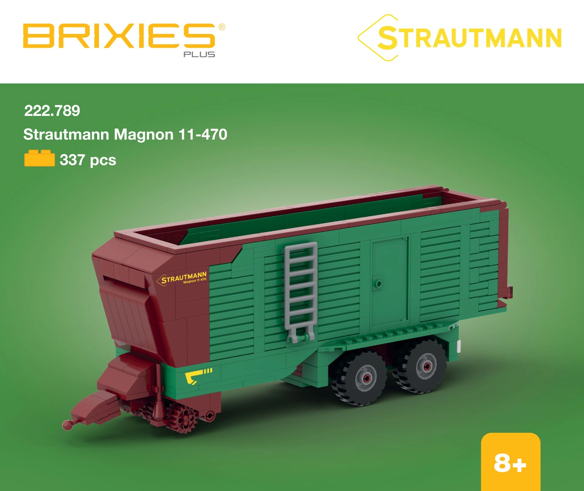 Ez a részletgazdag építőkészlet a valós gép által inspirált, élethű Strautmann Magnon 11-470 modellt kínálja. Összeépítve mérete kb. 31,9 × 11,5 × 8 cm (h × m × sz). A BRIXIES Plus sorozat nagyobb elemei kényelmes építést és nagyfokú stabilitást biztosítanak.