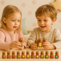 Ez az eredeti játék egyesíti a kicsomagolás örömét a gyűjtés varázsával. Minden doboz zárt tasakot rejt egy véletlenszerű kapibara kulcstartó figurával és tematikus gyűjtőkártyákkal. A masszív kivitel és a finom részletek tartóssá teszik a figurát és a kulcstartót a mindennapi használathoz.