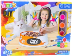 Ezzel a kreatív készlettel a gyerekek megtervezhetik és kifesthetik saját kerámia macskatáljukat. A mellékelt festékeknek és ecsetnek köszönhetően kombinálhatják a színeket, mintákat alkothatnak, és egyedi stílust adhatnak a tálnak. A kész alkotás használható praktikus etetőtálként vagy eredeti dekorációként a gyerekszobában.