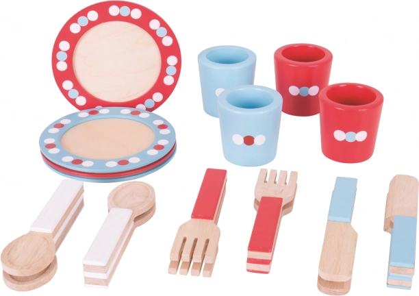 Ez a színes fa étkészlet a fiatal, kezdő szakácsoknak készült, akik szeretnék megteríteni saját vacsorájukat és teadélutánukat. Kiváló kiegészítő minden fa játszókonyhához, a készlet tartalmaz:< /p>