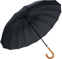 Elegáns és rendkívül tartós hosszú esernyő 24 megerősített bordával, amely ötvözi a klasszikus stílust, a magas szélállóságot és az automatikus nyitás kényelmét. A nagy, 115 cm-es kupola megbízható védelmet nyújt egy személynek vagy párnak is, a vízlepergető és gyorsan száradó anyag megkönnyíti a gondozást, míg a ívelt fa fogantyú időtálló megjelenést ad. A csomag tartalmaz vállpántos tokot a kényelmes hordozáshoz.