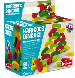 A Jeujura színes babok egy okos és szórakoztató fa játék, amely próbára teszi kicsik és nagyok ügyességét. A cél, hogy a babokat úgy építsd egymásra, hogy minden újonnan lerakott darab más színű legyen, mint az alatta lévő páros. Egyszerű szabályok, mégis meglepően izgalmas családi játék.