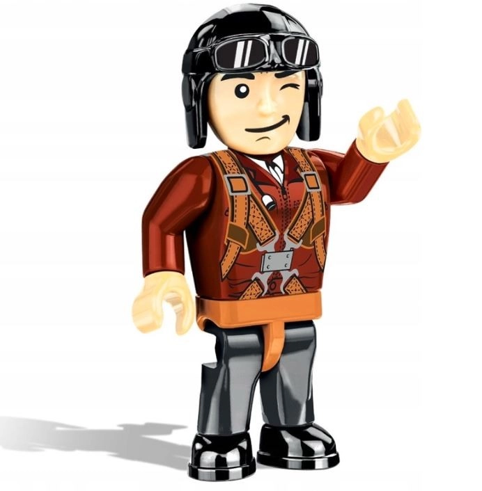 • Pilóta minifigura és kiállítási állvány névtáblával