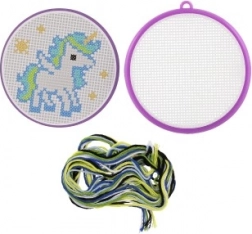Fedezd fel a kézimunka varázsát ezzel a keresztszemes hímzőkészlettel unikornis motívummal. Kezdőknek és 6 éves kortól gyerekeknek ideális – mindent tartalmaz: keret, minta, tű és 6 színes pamutfonal a könnyű és szórakoztató hímzéskezdéshez.